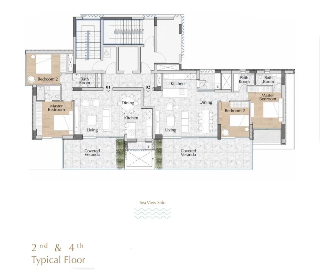 This project offer beautiful living spaces facing the sea. Comprised of eight 2-bedroom apartments and five whole-floor 3-bedroom apartments with maid’s quarters, this modern complex combines a contemporary architectural design aesthetic with understated elegance.