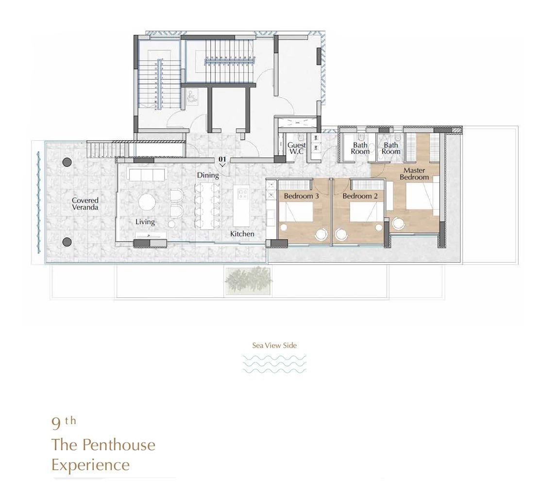 This project offer beautiful living spaces facing the sea. Comprised of eight 2-bedroom apartments and five whole-floor 3-bedroom apartments with maid’s quarters, this modern complex combines a contemporary architectural design aesthetic with understated elegance.
