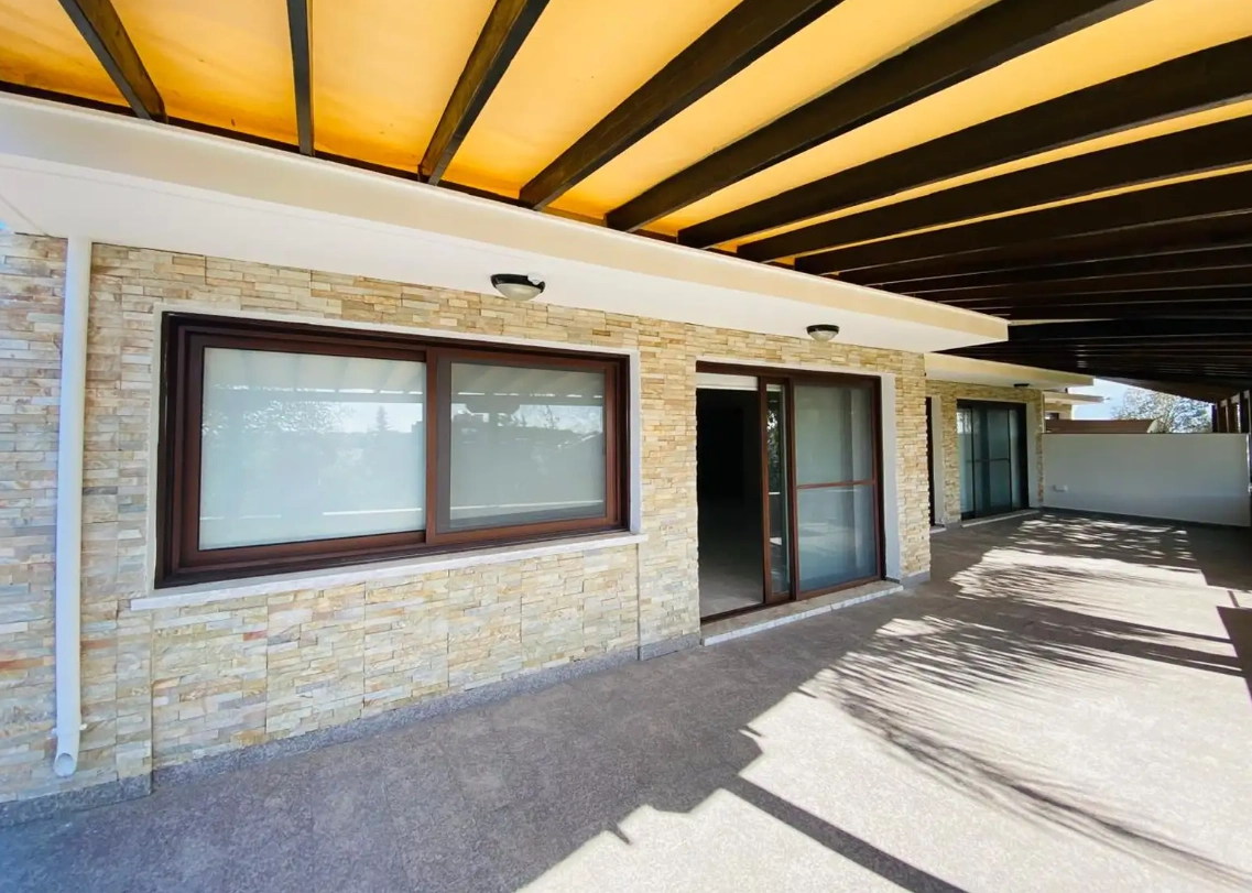 The house is 267 m2 with 45 m2 covered veranda and 64 m2 uncovered verandas. has 4 bedrooms with Irocco wooden floors.