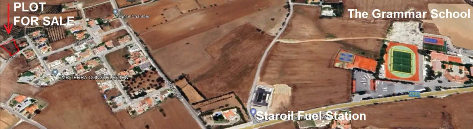 Land for sale in the community of Pano Deutera, Nicosia district. The property is located 400 meters (approx.) north of the Nicosia – Paleochorion link road and 700 meters (approx.) west of "The Grammar School". 598,5 m2 (whole share).