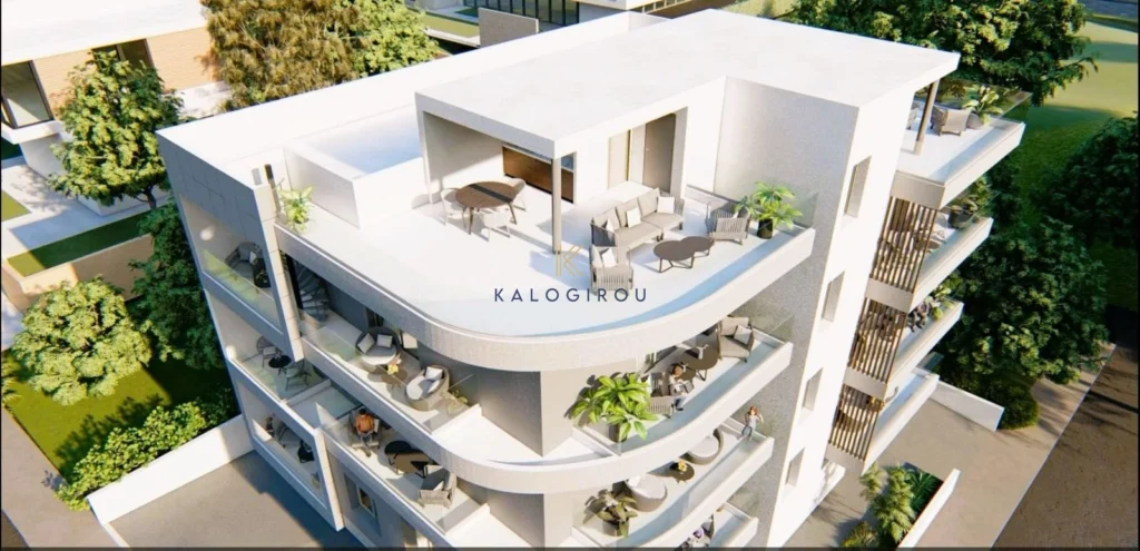 Apartment for sale in Larnaca, Mc Donald Drive Thru area. It is on the third floor and has expansive living areas. The apartment consists of an open plan kitchen, living, dining area, guest wc, two bedrooms, both of them en suite (shower), covered veranda and big roof garden. Furthermore, the property has access to an allocated covered parking space on the ground floor and storage room on the rooftop.