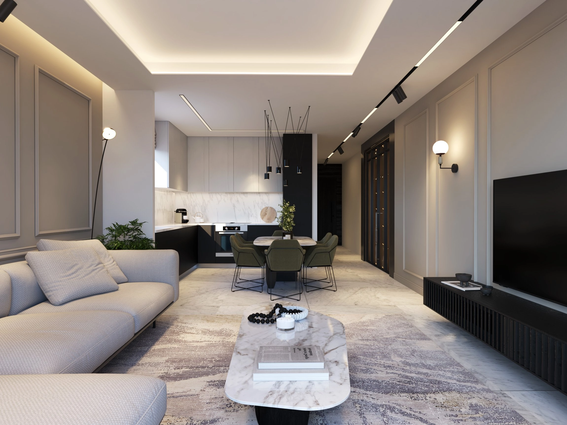A high-end project facing a public garden and surrounded by restaurants, cafes, shops and other services.