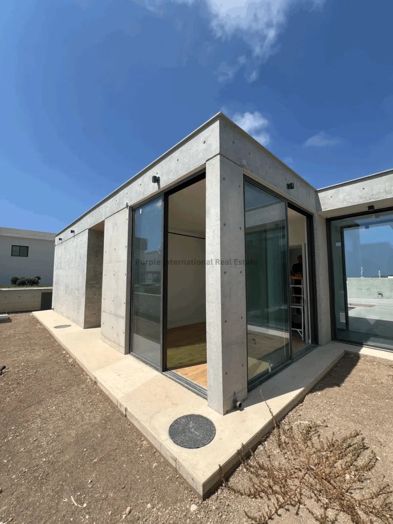 For sale, this modern bungalow is under construction and offers an impressive 200 m2 of internal space on a large plot within a secure, gated complex in Peyia. The property features a spacious design with three comfortable bedrooms and two stylish bathrooms, perfect for both families and those seeking extra space for guests or a home office.
