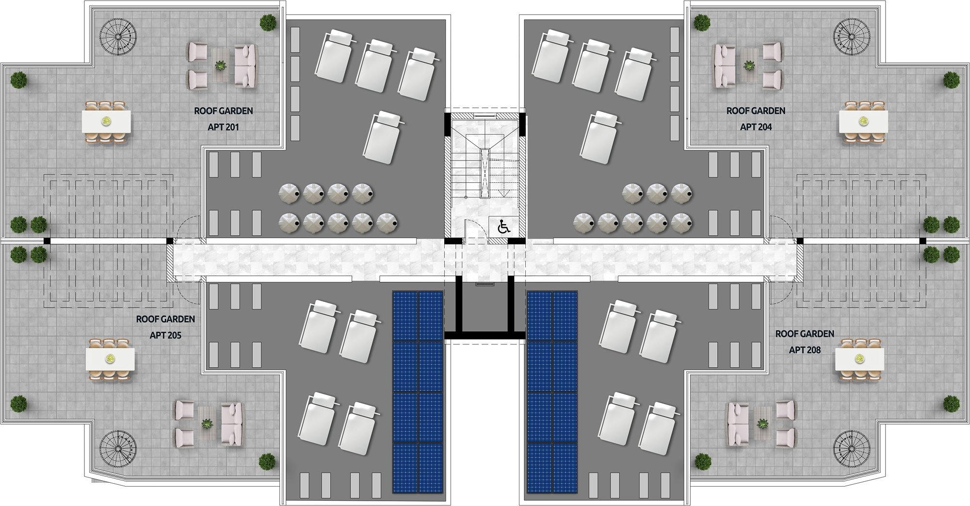 Penthouses owners will enjoy the breeze and sunlight from their private roof garden.
