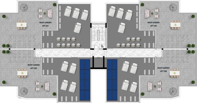 Penthouses owners will enjoy the breeze and sunlight from their private roof garden.