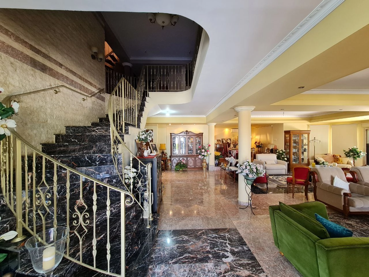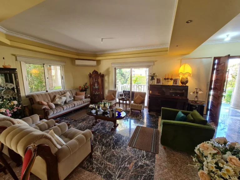 For sale a 8 bedrooms villa in Germasogeya Columbia area, Limassol. The villa is built on the plot 837 m2 and has internal covered area 749 m2, all bedrooms are ensuite. It consists of 4 levels: basement consists of studio, garage and storage room, ground floor of four living zones, kitchen, office, one bedroom and guest toilet, first floor of sitting area and four bedrooms and attic consists of 2 bedrooms and bathroom, there is also veranda on the roof with sea view. There are also swimming pool, barbeque area, covered verandas and garden.
