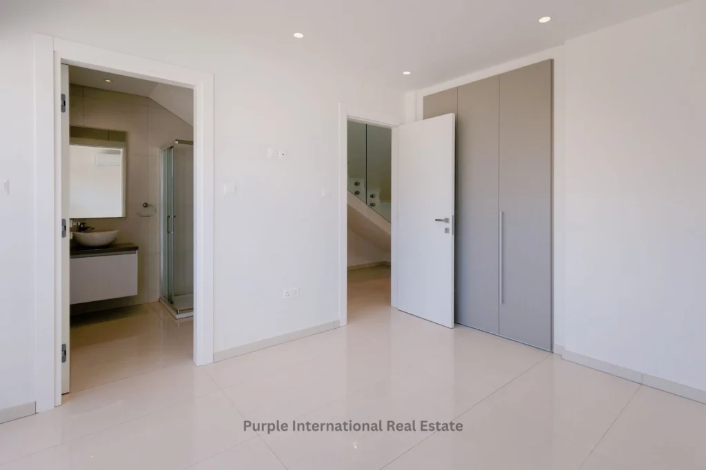 This 2-bedroom duplex is housed in a small new-build block of only four 2-bedroom units in Germasogeia, one of the most desirable locations in Limassol. The quiet residential neighborhood is only 2km from the nearest organized sandy beach. All everyday amenities from banks and supermarkets to shops and restaurants are less than 1km from the property. In addition, easy access to the highway makes it an ideal base for commuters or regular travelers, as it is midway between the two airports in Larnaca and Pafos, both around 50km away.