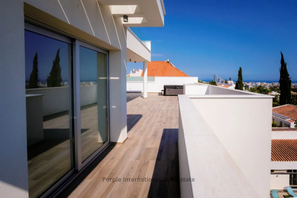 This luxurious 2-bedroom penthouse is the jewel of a small new-build block of only four 2-bedroom units in Germasogeia, one of the most desirable locations in Limassol. The quiet residential neighbourhood is only 2km from the nearest organized sandy beach. All everyday amenities from banks and supermarkets to shops and restaurants are less than 1km from the property. In addition, easy access to the highway makes it the ideal choice for commuters or regular travellers, as it is midway between the two airports in Larnaca and Pafos, both around 50km away.