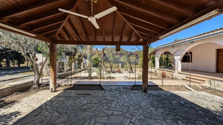 This exceptional residential land stands out not only for its generous size but also for a key legal benefit: a 4.57-meter-wide right of way from the adjacent plots. According to current planning regulations, this specific width allows for the development of up to three separate residential units without additional costs for formal plot subdivision—an advantage for investors or developers. All development plans are, of course, subject to approval by the relevant authorities, but this property presents a strategic and cost-effective pathway to maximize residential returns in a sought-after location. Included with the land is a ground-floor home nestled in the heart of nature, in the serene community of Psevdas, Larnaca. Set within a vast 6,948m² residential field, this property offers a rare opportunity to enjoy countryside living while remaining connected to nearby villages and amenities. Originally built in 1985, the house is thoughtfully positioned on the eastern portion of the plot, with direct frontage on Agias Aikaterinis Street and access via a 4.57m right of way through four neighboring parcels. Surrounded by greenery and fresh air, the home lies just 600m from Psevdas Community Stadium and 620m from the village kindergarten, with easy access to Agia Anna, Mosfiloti, and Pyrga. The home boasts a 166m² enclosed area featuring a warm, rustic interior. Step inside through the spacious covered veranda (47m²)—which wraps around the south, east, and west sides of the house—into an open-plan layout with a cozy sitting area, dining/living space, and built-in bar, perfect for hosting family and friends. The kitchen includes an additional kitchenette for extra convenience, while three comfortable bedrooms share a well-sized bathroom. The property falls within Zone H2, with a building coefficient of 90%, coverage of 50%, and permission for 2 floors (8.3m) of construction. Pending issuance of Energy Performance Certificate.