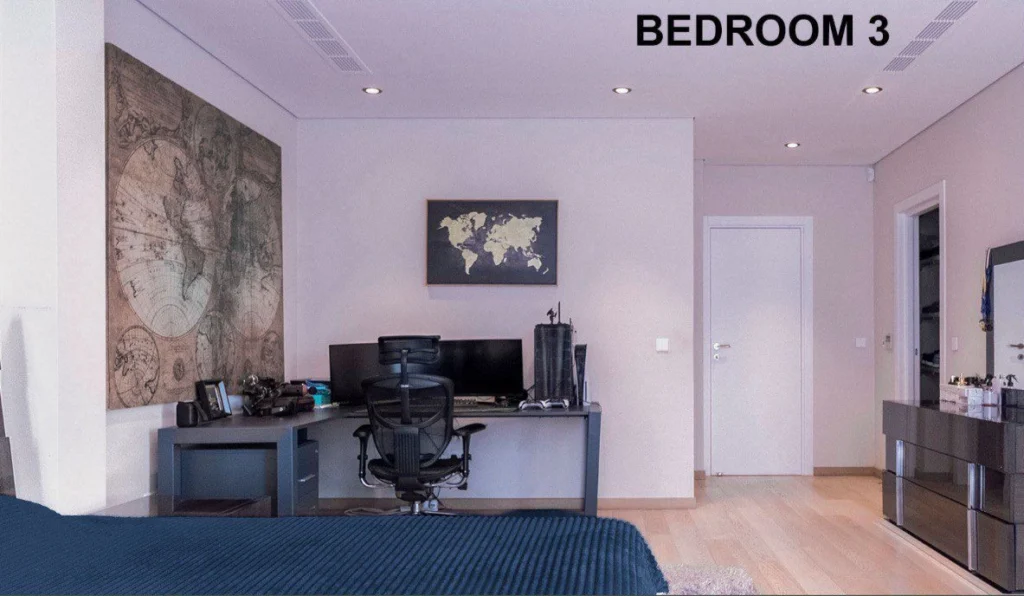 4 spacious Master Bedrooms: 1 on the first floor, 2 on the second floor, 1 in the basement