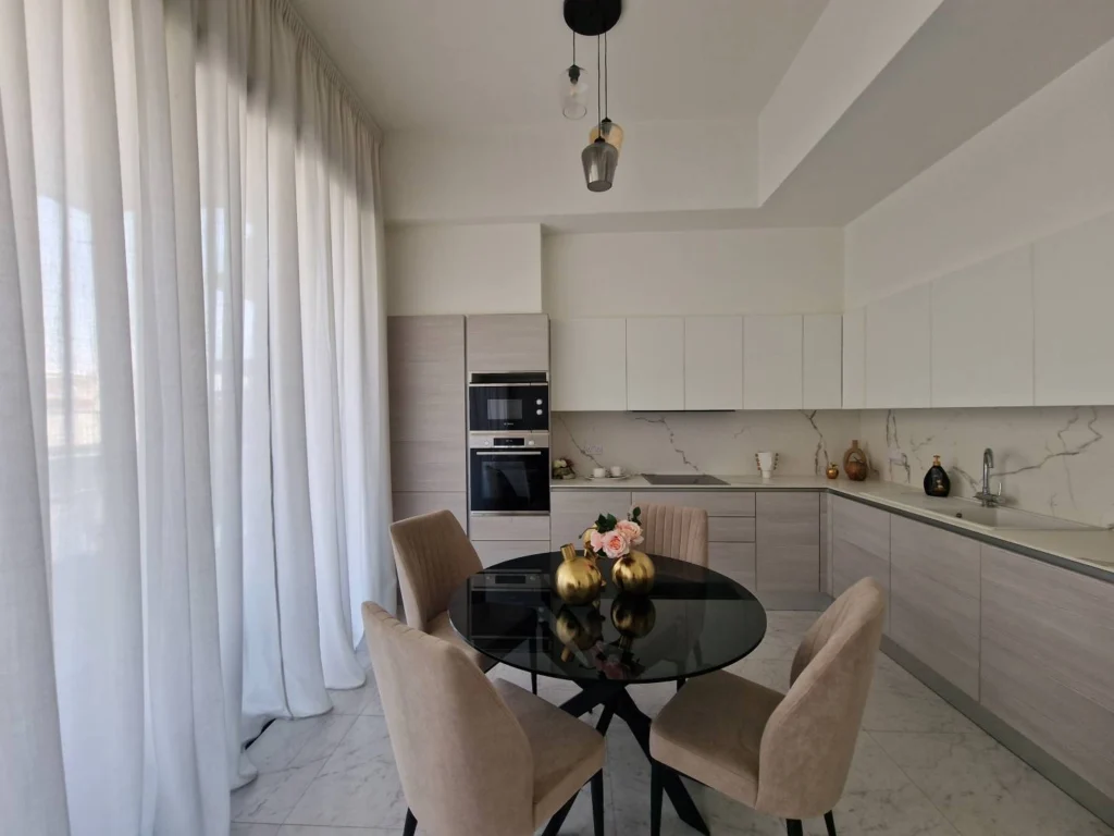 For sale a spacious 2 bedroom apartment in a modern complex consisting of 3 five-storey apartment buildings located in the center of Limassol (Mesa Geitonia) near Ajax Hotel. Only 5-10 minutes walk separates you from supermarkets, shops, restaurants, cafes, banks and many other urban infrastructure facilities, and 15-20 minutes from the beach. The location in the complex of only 30 apartments with large verandas, separate storerooms and Parking spaces, as well as a developed internal infrastructure, including a 17x5m swimming pool, a landscaped garden, a children’s playground, a gym and a controlled entrance to the territory, provides a cozy and comfortable stay. The apartment has sound and thermal insulation windows with double glazing, a Mitsubishi water floor heating system, a built-in Mitsubishi VRV system, solar and electric water heating systems, Italian high-quality tiles in the living room, kitchen and bathrooms Atlas Concorde, German laminated parquet Kronotex (thickness 10 mm) in the bedrooms, Italian built-in wardrobes Colombini Casa, Italian bathroom furniture sets Falegnameria Adriatica, built-in Italian kitchen Scavolini, plumbing of the Portuguese brand Bruma, armored fire-resistant entrance door (fire resistance 60 min), front door lock from the market leader, Italian company CISA, ceiling height in the apartment 3.55 M.