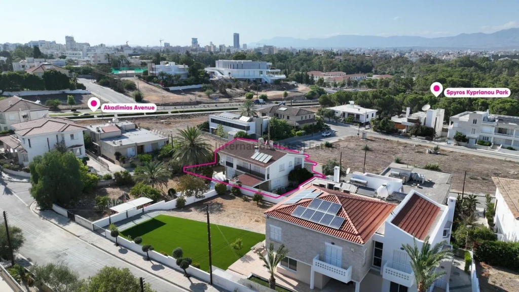 The property under consideration is a three bedroom house located in Aglantzia, Nicosia. The ground floor of the house comprises of a living room, bar, open plan dining-sitting area, kitchen, and a guests’ toilet and a storage area. The first floor comprises of three bedrooms (one of which is en-suite with a bathroom), an office and a bathroom. Furthermore the property offers a basement which is being used as a parking area and service room. The asset is located approximately 1.3km from the motorway and approximately 6km from Strovolos Nicosia. The property falls within Zone Κα6, with a building coefficient of 90%, coverage of 50%, and permission for 2 floors (10m) of construction. Energy Category: E