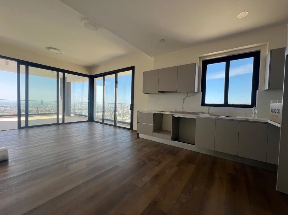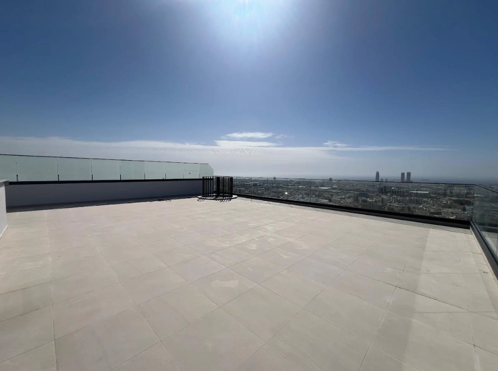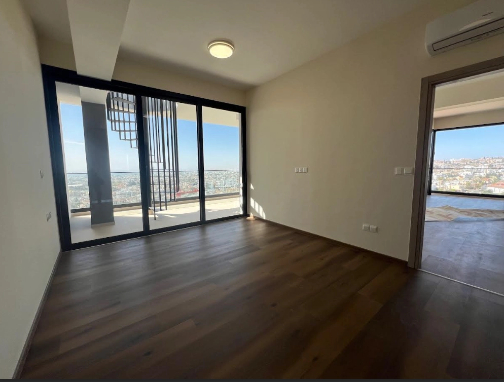 Brand new 3 b/r penthouse with sea and city views located in a private gated complex on the hill in Agios Athanasios area, with easy access to the highway. The internal area is 135 sq. m + 53 sq. m covered veranda and 138 sq. m roof garden with panoramic views. It consists of an open-plan kitchen connected with a dining and living area, 3 bedrooms (2 bedrooms en-suite with shower and bathtub) and a family bathroom. Upstairs, there is a spacious roof garden with BBQ area. It has an air conditioning system, underfloor heating, panoramic double-glazed windows, solar panels for hot water and photovoltaic for solar energy, an intercom system, covered parking and storage.