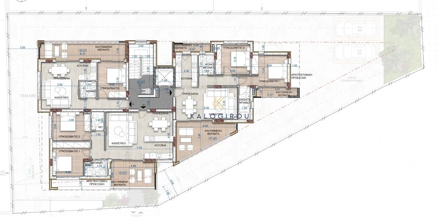 Apartment for sale in Limassol, in Mesa Gitonia area. It is on the first floor, it has 79sq.m of internal are and it consists of two bedrooms, an open plan kitchen, dining & living room, one en – suite bathroom with W/C, in the master bedroom and one main shower with W/C. In addition, the residents have right of use to a covered parking and storage. The property also belongs a specious covered veranda of 26sq.m.