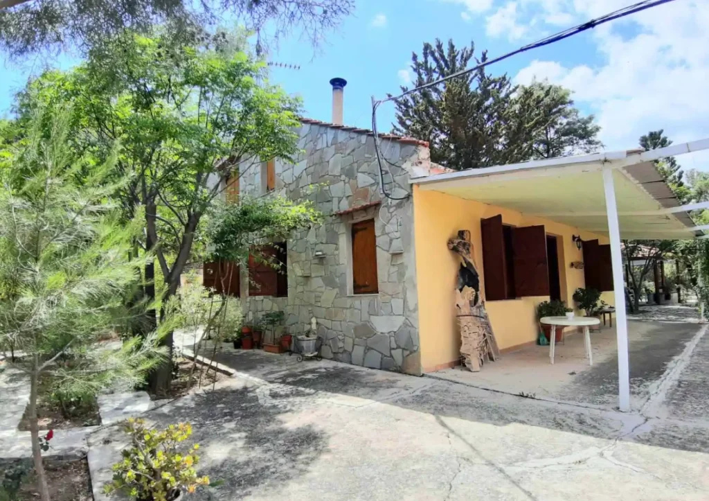 The house consists of an open-plan living, kitchen and dining area, bedroom and toilet/shower on the ground floor, 2 bedrooms and toilet/shower on the first floor. Auxiliary spaces with kitchen, toilet and storage rooms, barbecue area and traditional ovens, gazebo and garden.