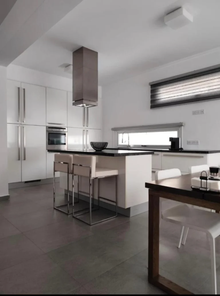 Elegant 5-Bedroom Villa with Sea View in Agios Athanasios – Near Foley’s School Built on a 760 m² plot, this 350 m² home features four generously sized en-suite bedrooms, each offering privacy and comfort, plus an additional room that can be used as a guest bedroom or home office. The master suite includes a walk-in closet, and all bedrooms are equipped with built-in wardrobes. The property boasts a large, separate kitchen, a bright and open-plan living and dining area, and high-end finishes throughout. Comfort is ensured year-round with central heating (petrol), air conditioning in all rooms, and solar panels for hot water. Additional features include a security alarm system and electric gates. Outdoors, the villa offers a private swimming pool, landscaped garden, and covered parking for up to three vehicles.