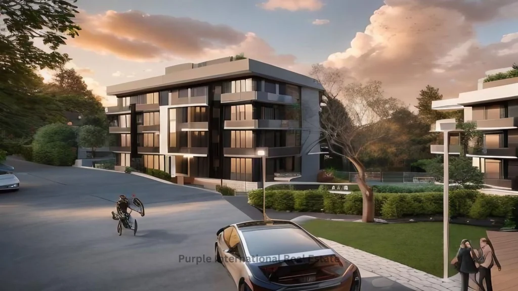 The apartment is located within a secure, gated complex and benefits from access to a communal swimming pool, perfect for relaxation and leisure. Large windows fill the living space with natural light and frame striking views of the sea, ensuring a peaceful and scenic environment.