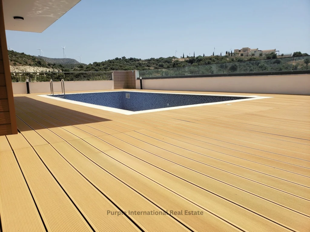 The villa features 2 spacious bedrooms and 2 contemporary bathrooms, making it ideal for small families, couples, or as a holiday home. The open-plan living area connects to a private swimming pool, where you can relax while enjoying charming sea views. With a modern architectural style, large windows fill the home with natural light and offer exceptional views of the surrounding landscape.