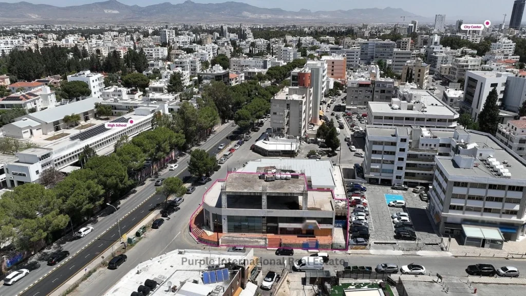 This is a well-positioned commercial plot located in the sought-after area of Engomi, Nicosia. The asset lies just 200 meters southwest of Prodromou and Vyzantiou intersection and approximately 450 meters from the junction of Griva Digeni and Prodromou avenues. It enjoys a highly visible location directly opposite Engomi High School and is only 200 meters northeast of Kykkos A’ Lyceum. The plot spans a total area of 781sq.m. and benefits from a prominent corner position. It features 20 meters of frontage along Stasinou Street (west) and 40 meters along Andreas Dimitriou Street (south), offering excellent accessibility and visibility. The property currently includes a ground-floor structure with a basement. According to the area’s planning zone, the existing structure is considered economically obsolete and does not reflect the highest and best use of the site, presenting a strong redevelopment opportunity. The property falls within Zone Εβ2, with a building coefficient of 180%, coverage of 50%, and permission for 8 floors (31m) of construction. There is a title deed in place that corresponds to the land.