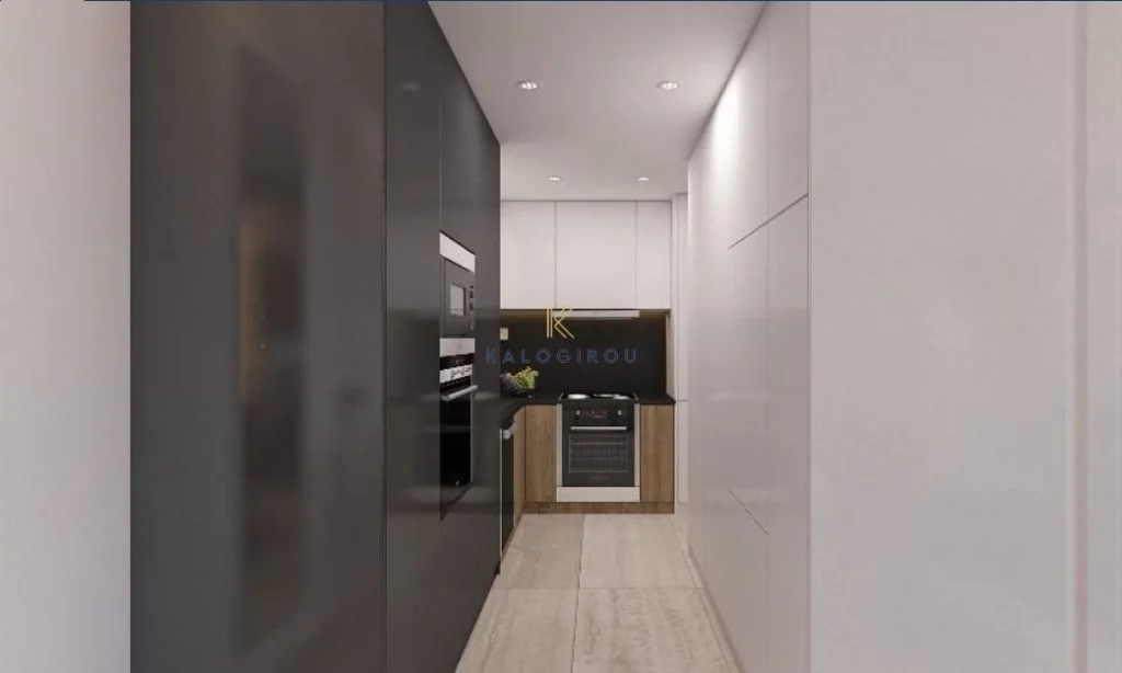 Apartment for sale in Livadia area, Larnaca. It consists of an open plan kitchen, living room, dining area, one bathroom, one bedroom and covered veranda. The property has access to an allocated covered parking and storage on the ground floor. Common swimming pool, gym and sauna, available for the residents also on the ground floor.