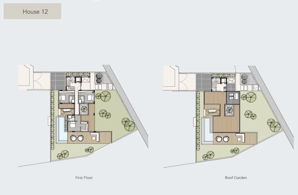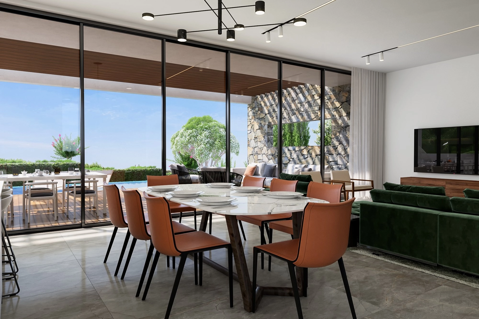 4 detached exclusive villas. Each villa has 3-4 bedrooms with a unique design and roof garden. Plot sizes 300 – 500 m2 each. Excellent views of Limassol Bay.