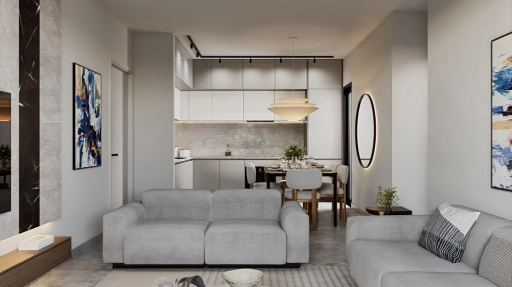 Apartment for sale in the area of Ypsonas, Limassol. The complex offers fifteen carefully designed apartments – twelve with 1 bedroom and three with 2 bedrooms – spread over three floors.The apartments combine high-end design, finishes and the latest trends using high-quality materials and plumbing.Each apartment in the complex is designed with maximum comfort in mind. The project includes an open-plan living room and kitchen, as well as a spacious terrace. In addition, there are parking spaces and storage rooms for each apartment.This energy-efficient complex is rated “A”, which significantly reduces utility costs.The complex is located close to all necessary amenities.The project is in the off-plan stage.