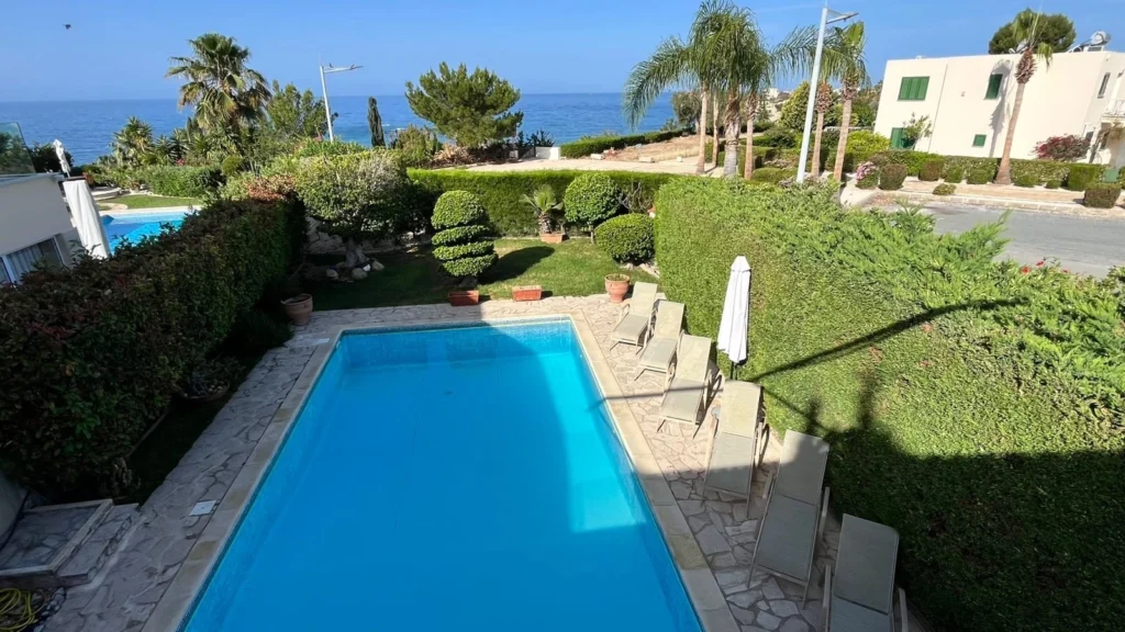 The villa is located in the prestigious Coral Bay area with a unique microclimate. The only place in Cyprus where banana palms grow. In a gated, landscaped complex 100 meters from the sea on the first line. Completely completed construction and improvement of the entire territory. Peace, safety and functioning of all life support systems, thanks to the developed infrastructure.