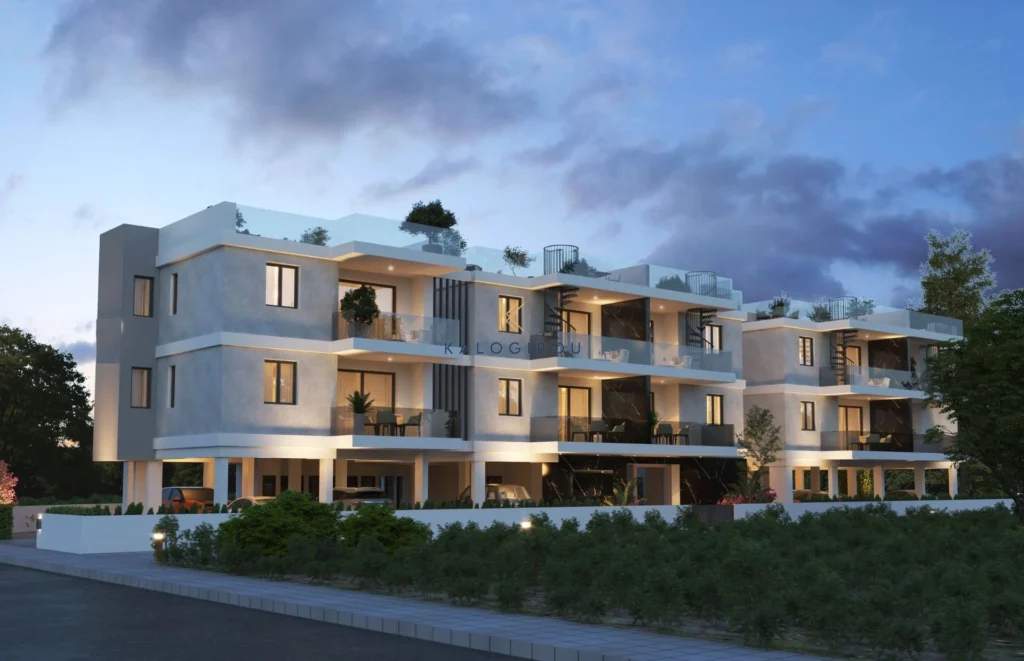 Apartment for sale in Sotira village, Famagusta. It consists of kitchen, dining, living area in an open plan space, a main shower room, two bedrooms, en suite with shower master bedroom and spacious covered balcony. The apartment has right of private access to a covered parking and storage on the ground floor.