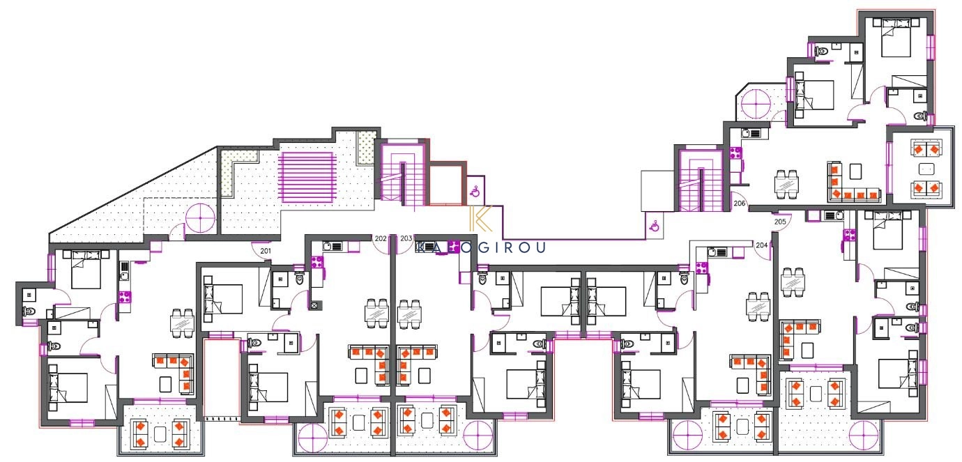 Apartment for sale in Sotira village, Famagusta. It is on the second floor. The apartment consists of kitchen, dining, living area in an open plan space, a bathroom with shower & wc, two bedrooms, master bedroom en suite with shower, covered balcony and roof garden. Moreover, the residents have access to an allocated covered parking spot and storage on the ground floor.