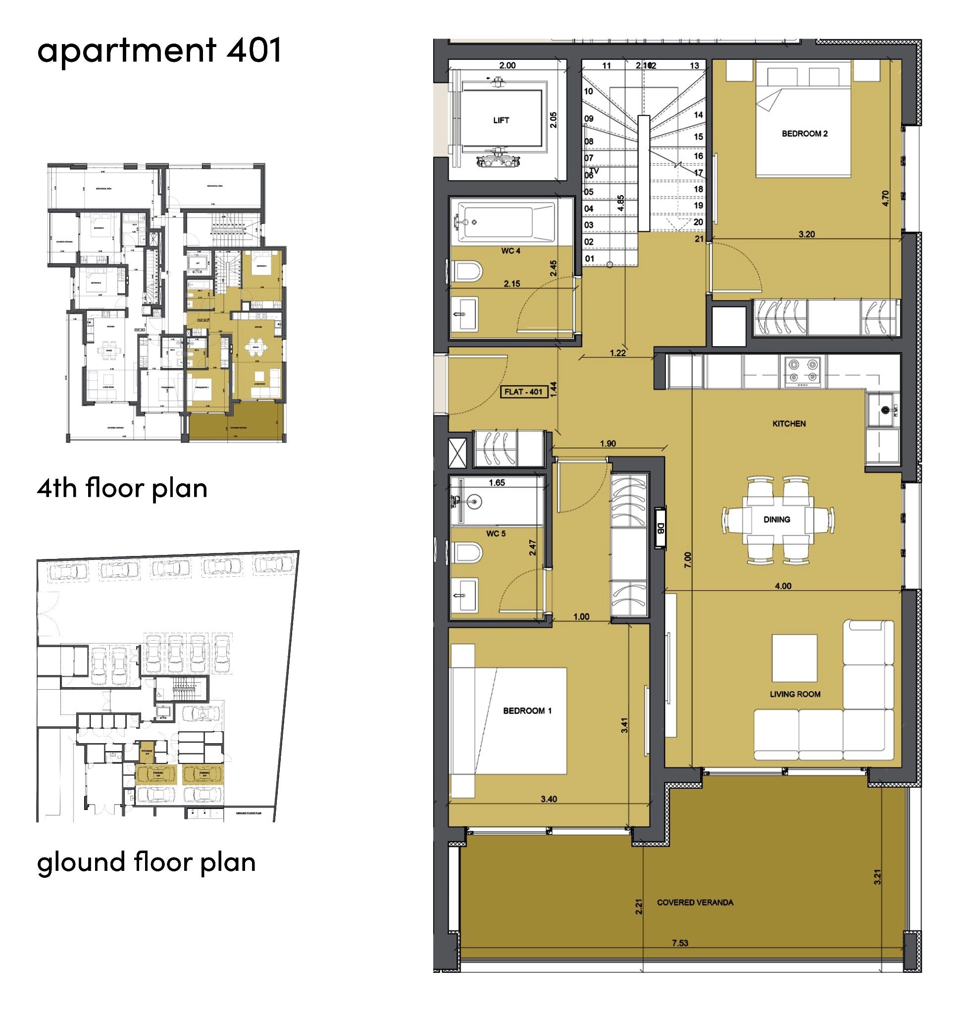 This penthouse features a 35.7 m² auxiliary area located on the roof.