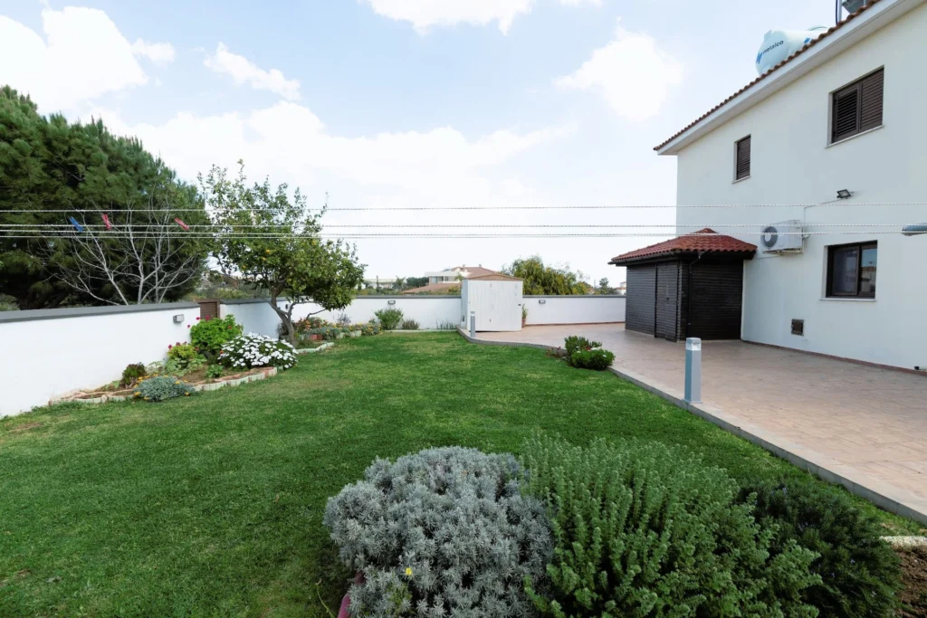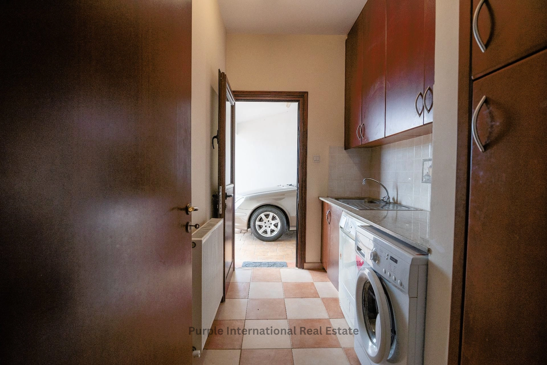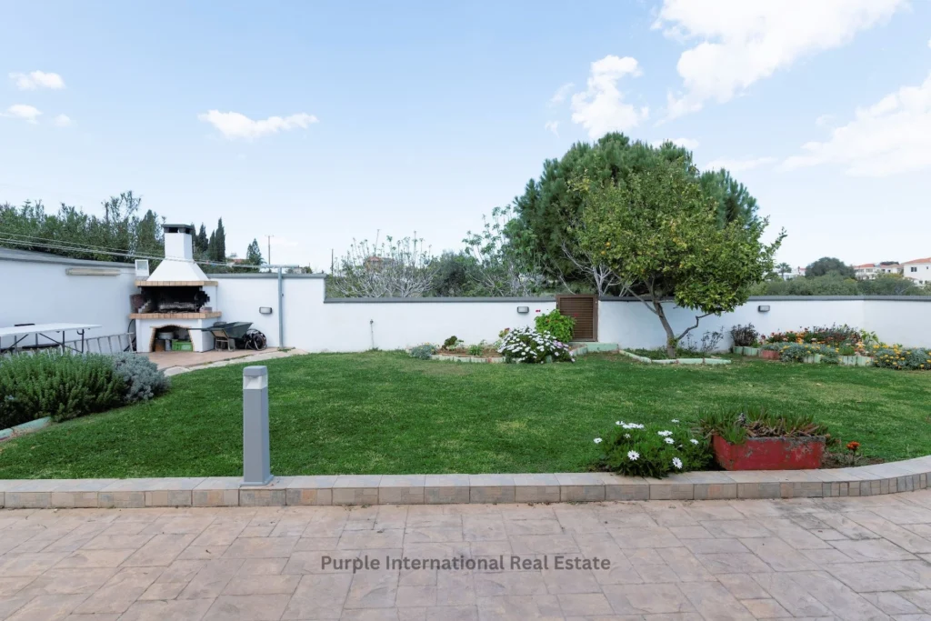 The front and rear gardens boast lush green landscaping. The back garden has a barbeque area with ample space for an optional private swimming (included in the price). The back yard connects to an extra 500 m² plot of government land which is currently being utilized for olive and fruit trees.