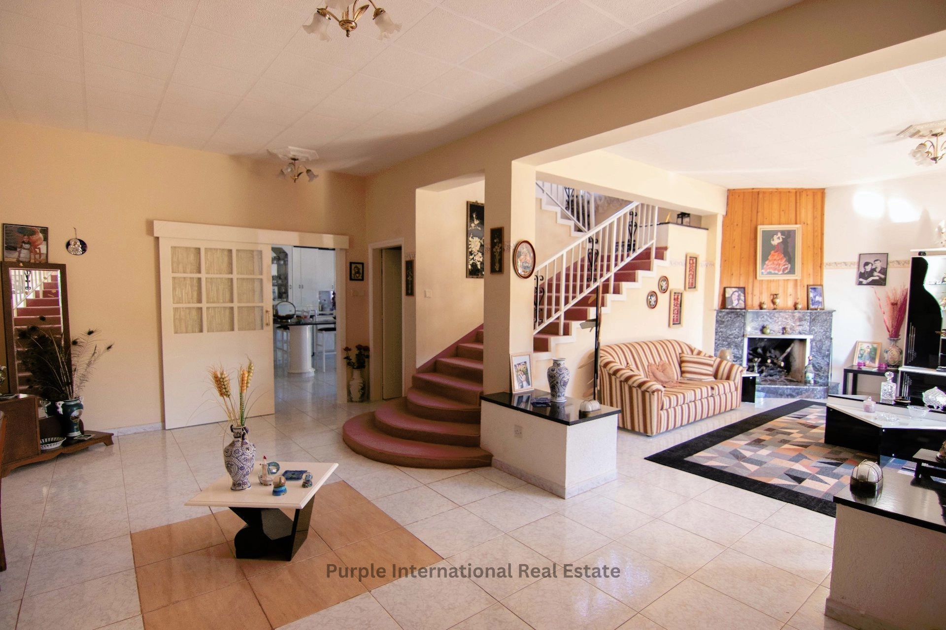Stepping inside this spacious property you are pleasantly greeted by the open plan reception with a feature staircase, the lounge has a marble fireplace for the cosy winter nights and patio doors leading to the front terrace which is elevated with steps going down to the garden. The separate kitchen has a superb breakfast bar, an abundance of worktops and cupboard space plus a storage room.