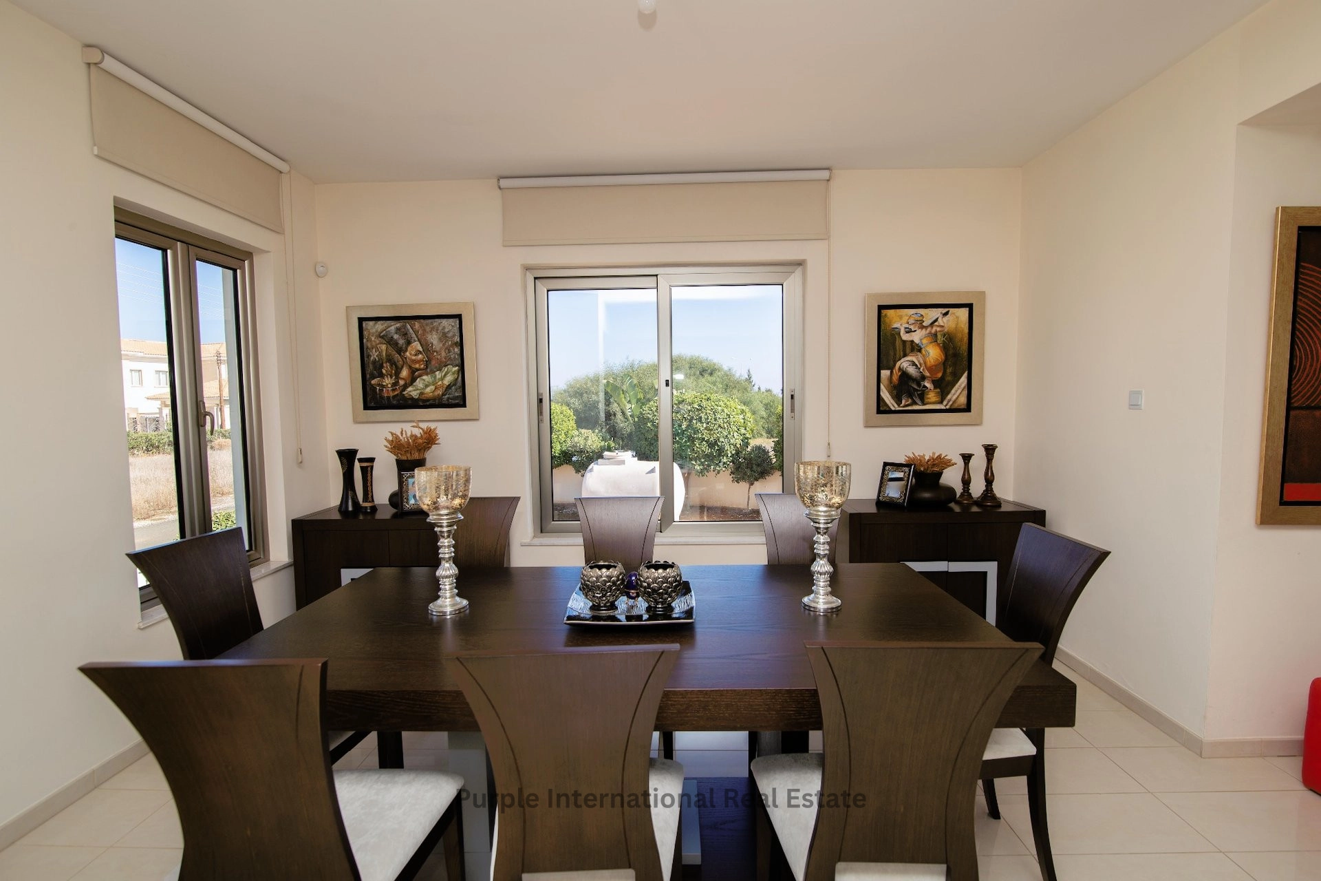 The villa is set on a 1224 m2 plot with large garden and patios areas, covered parking for two cars and ample room to add a swimming pool.