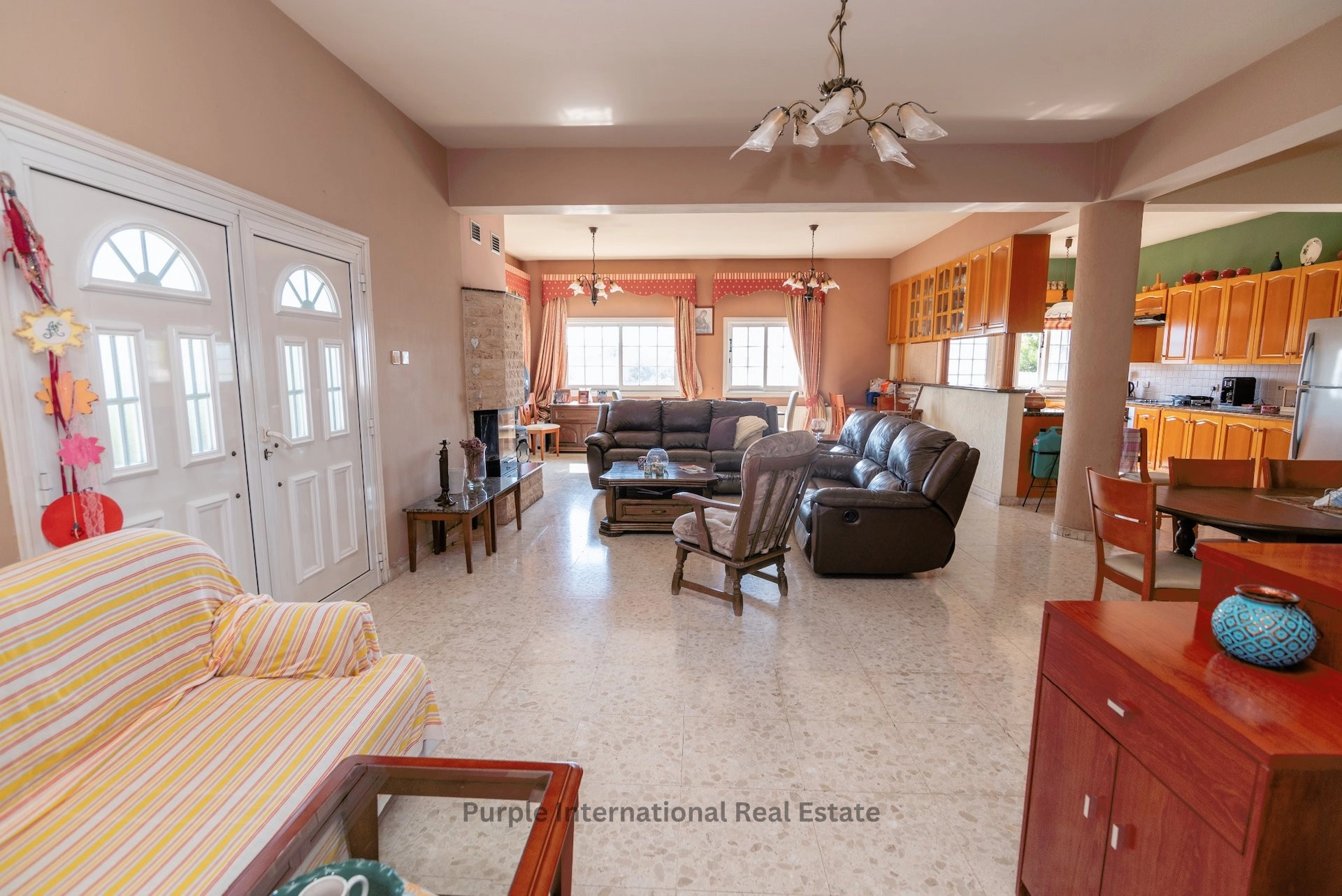 The house has a large outdoor area with mature trees, a front veranda, a garage for 2 cars and a traditional Cypriot clay oven. There is more than enough space to add a private pool.