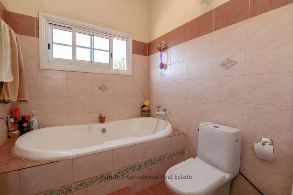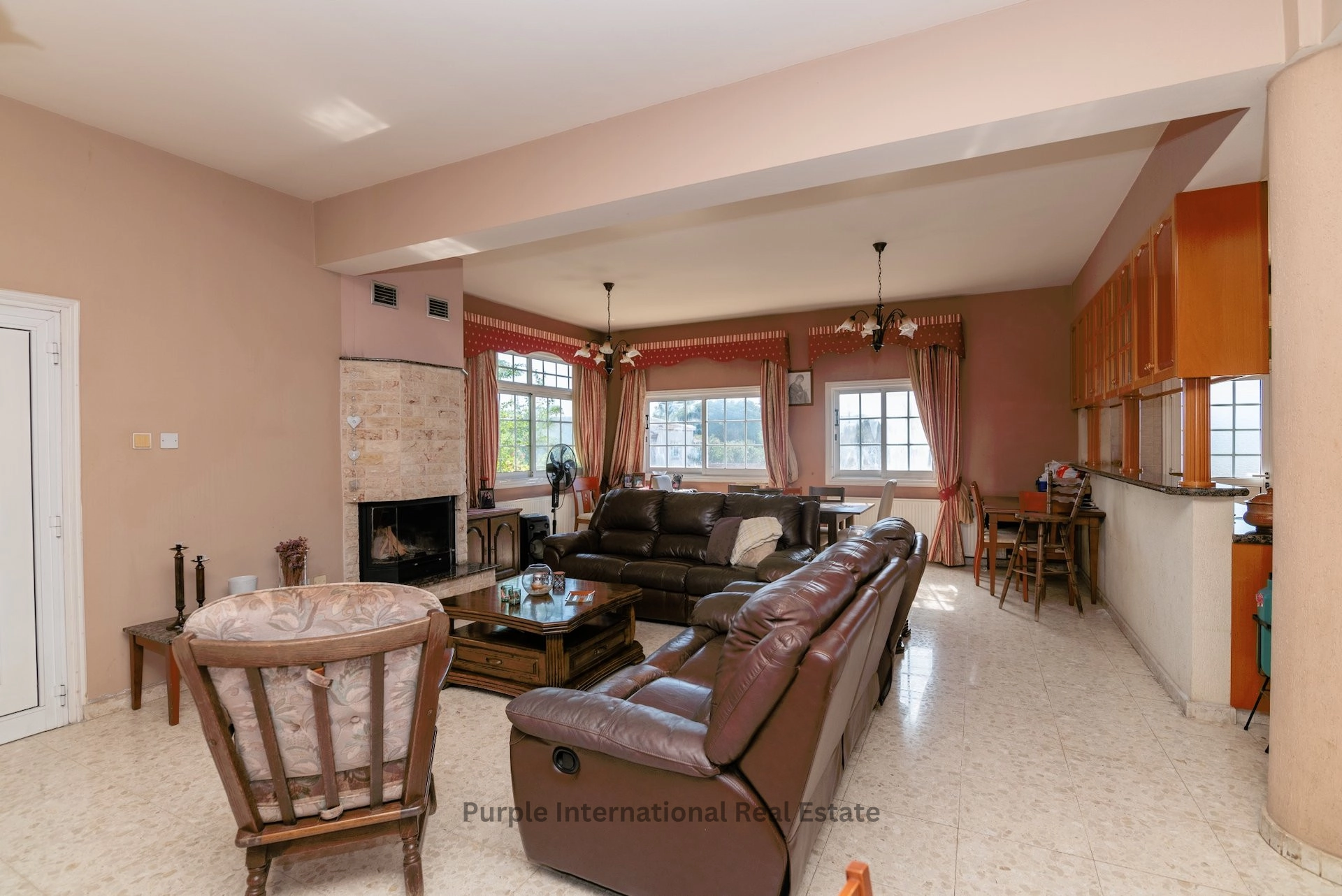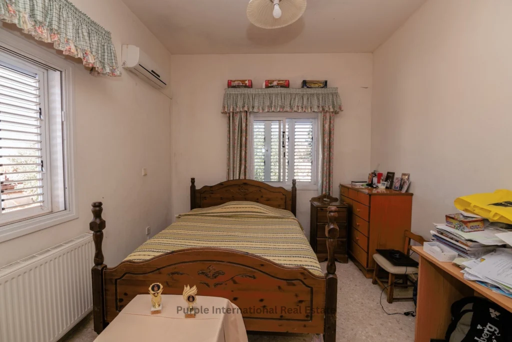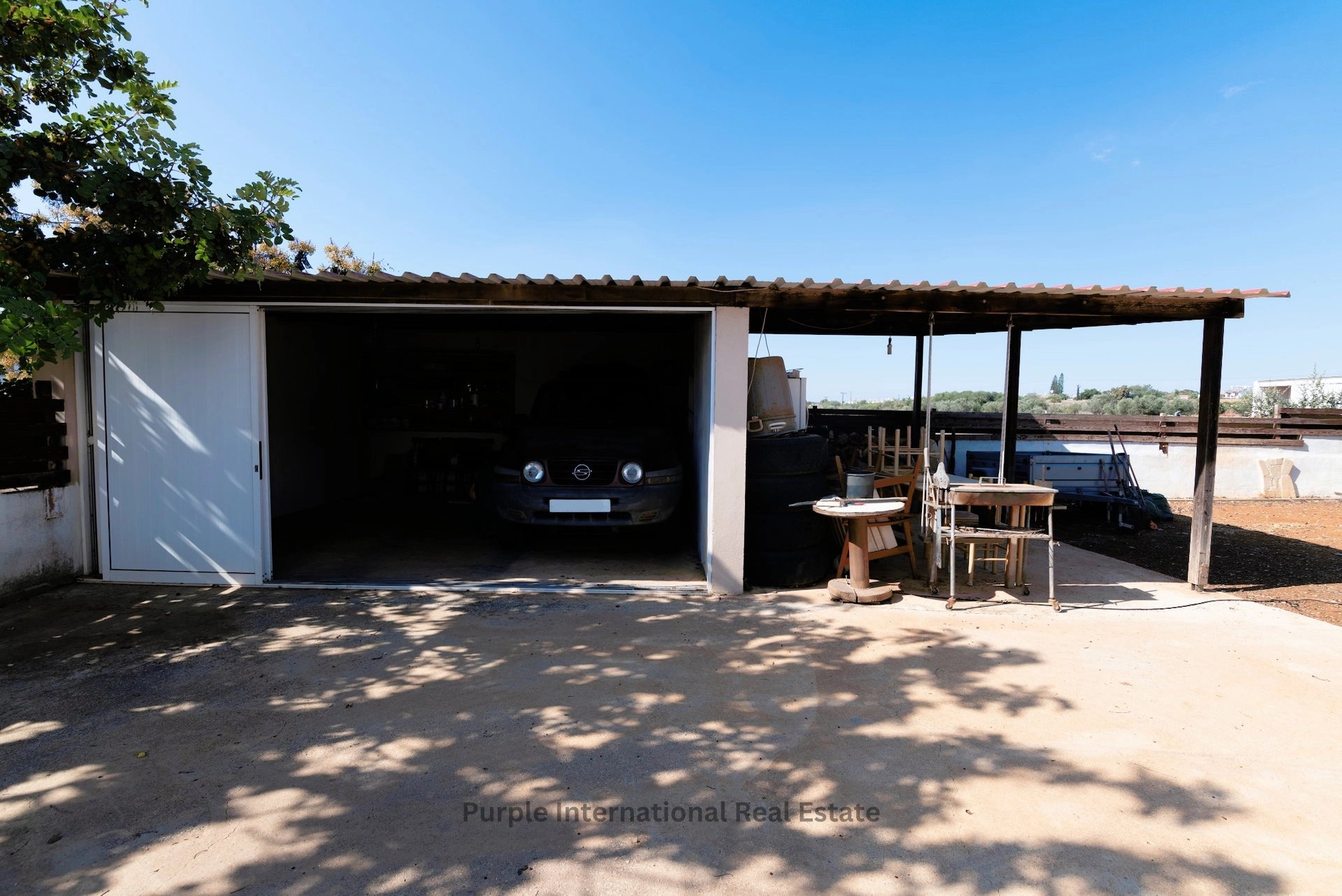The house has a large outdoor area with mature trees, a front veranda, a garage for 2 cars and a traditional Cypriot clay oven. There is more than enough space to add a private pool.