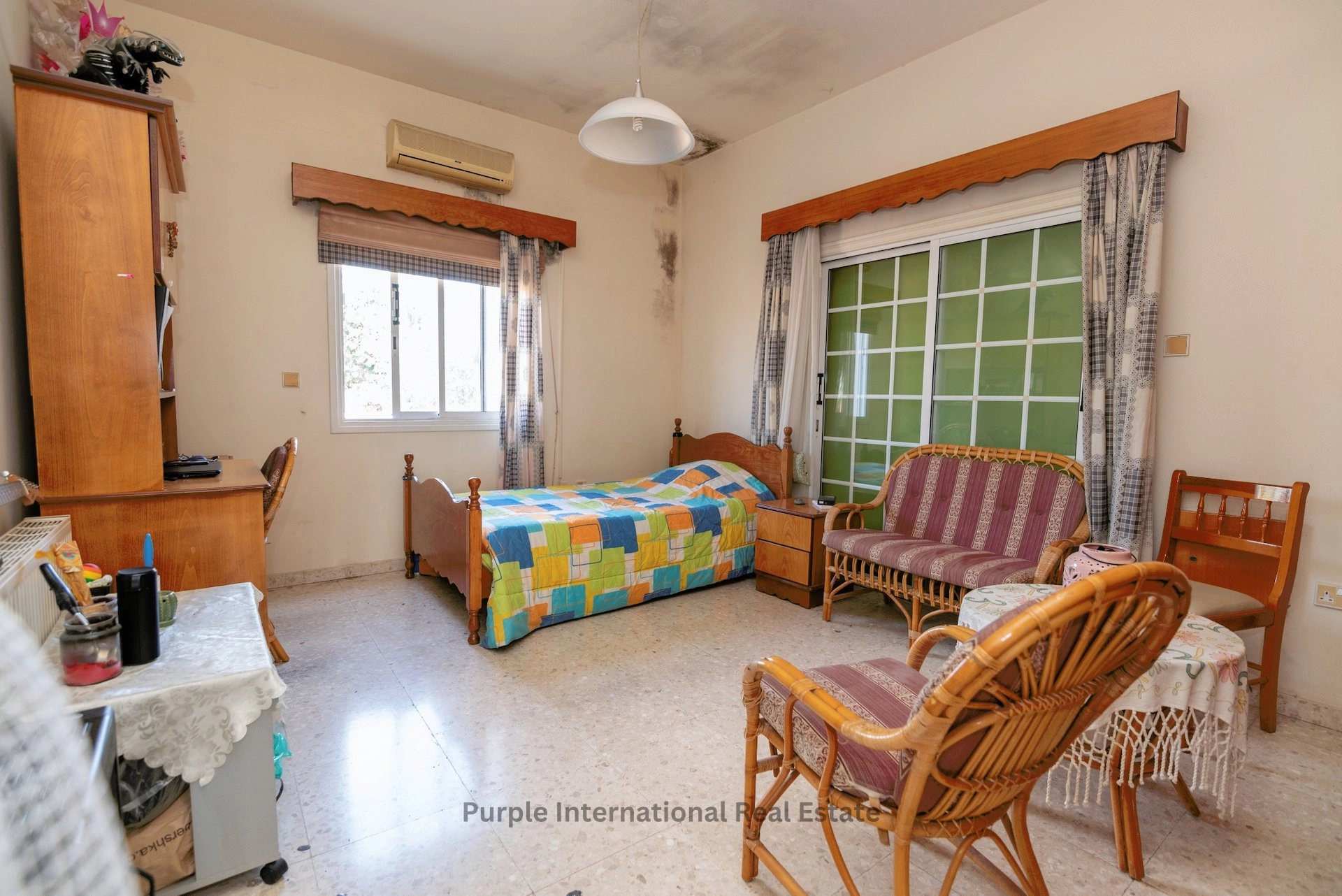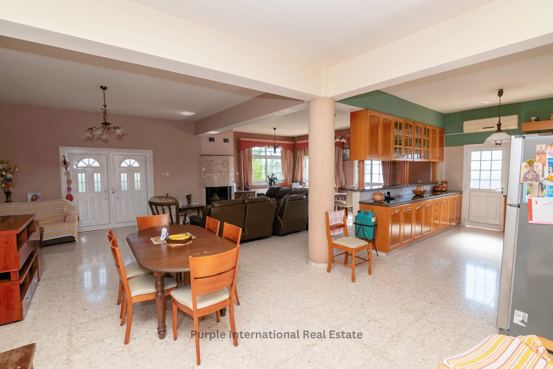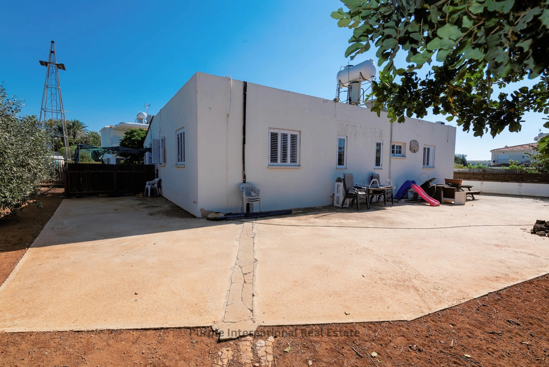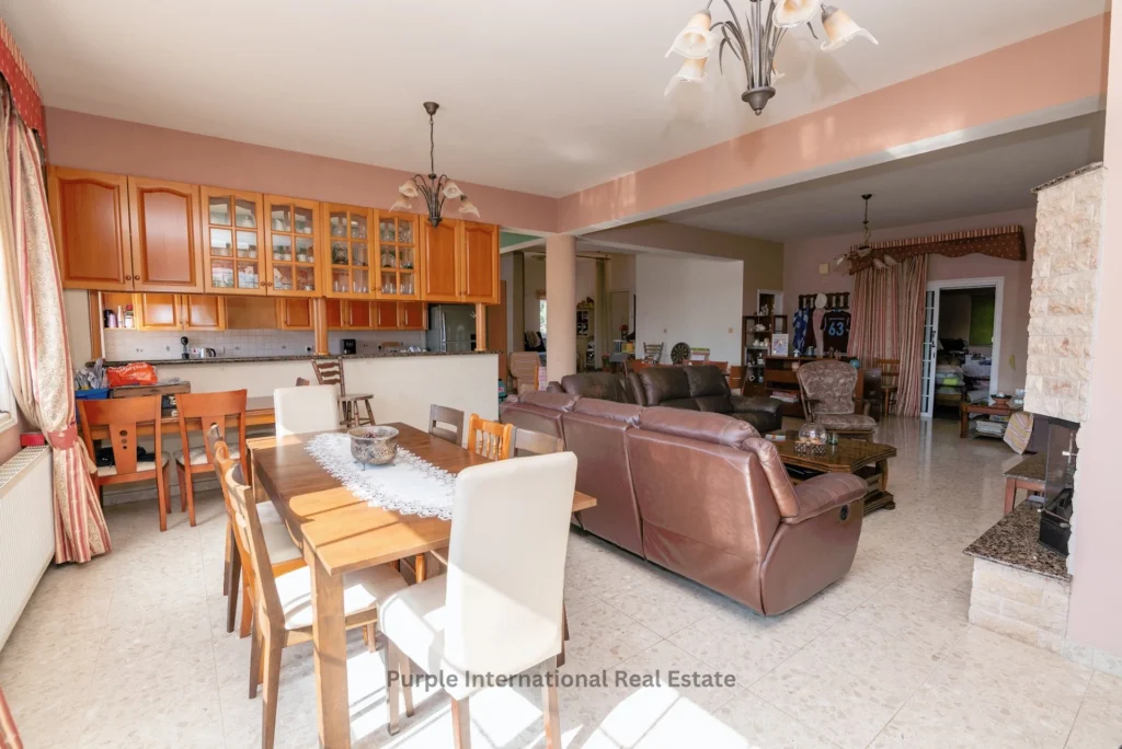 The house has a large outdoor area with mature trees, a front veranda, a garage for 2 cars and a traditional Cypriot clay oven. There is more than enough space to add a private pool.
