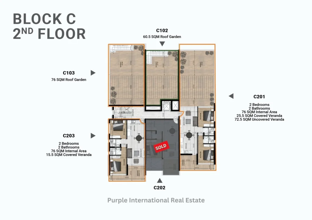 Listing is for a Two Bedroom Penthouse apartment with Roof Terrace.