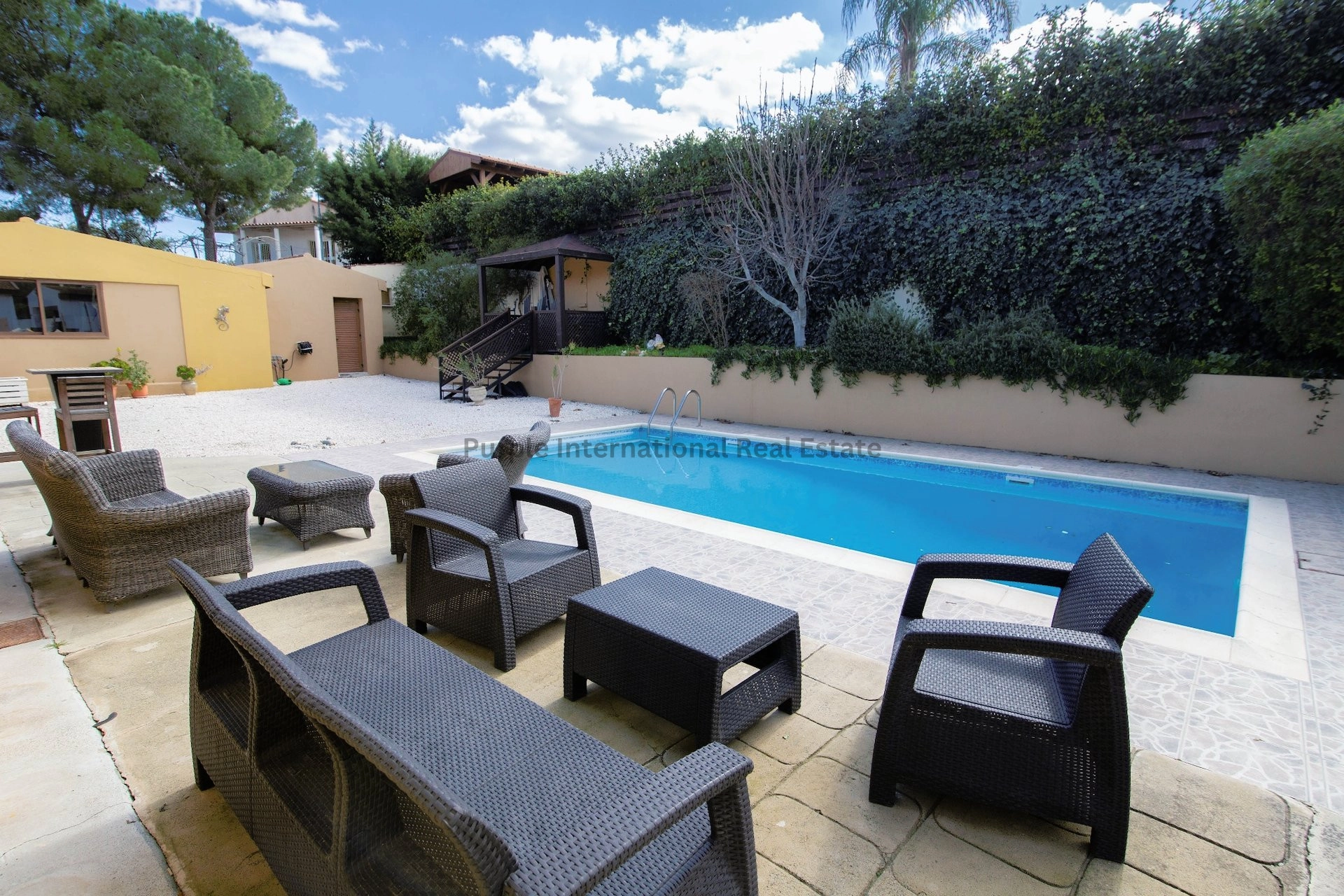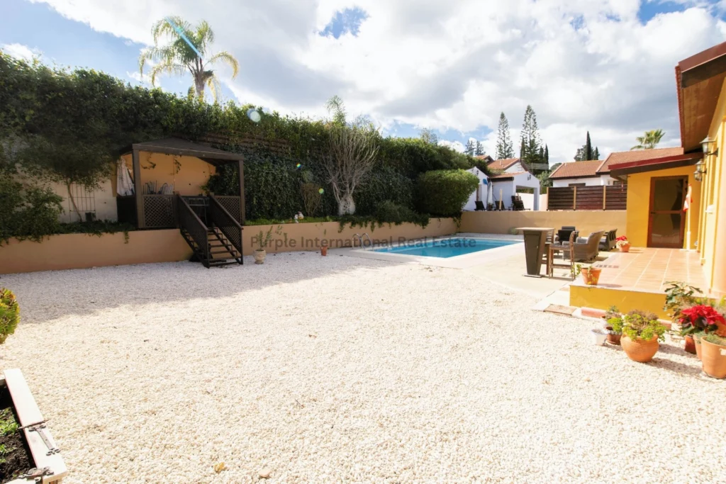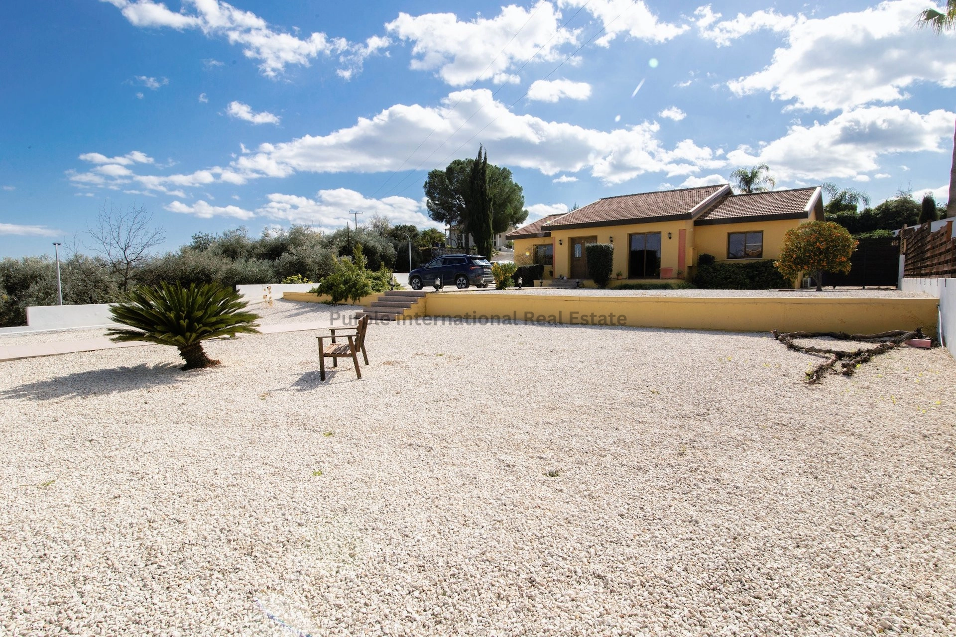 The property sits back from the road on a fantastic sized plot of 1364sqm raised on different levels, covered with white stone, the area is very low maintenance.