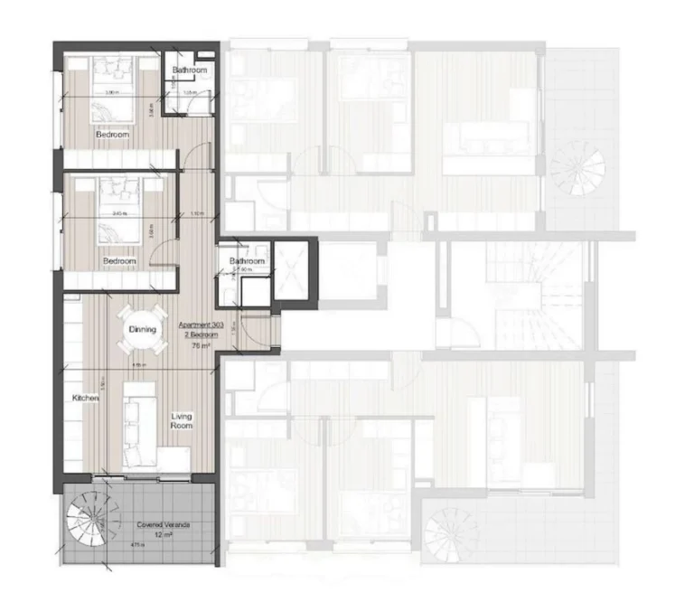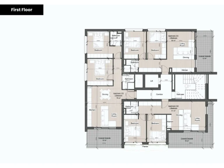 For sale: Off-plan apartment offering 75 square meters of modern internal space. Located on the 1st floor of a three-story building with elevator access, this property combines comfort and convenience. The layout features two well-sized bedrooms and one stylish bathroom, perfect for couples or small families.