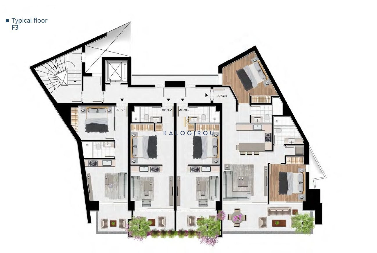 Third floor apartment for sale in the heart of Larnaca city center. It consists of an open plan kitchen with island, living room, a main bathroom, 2 bedrooms, 1 en suite shower and covered veranda.