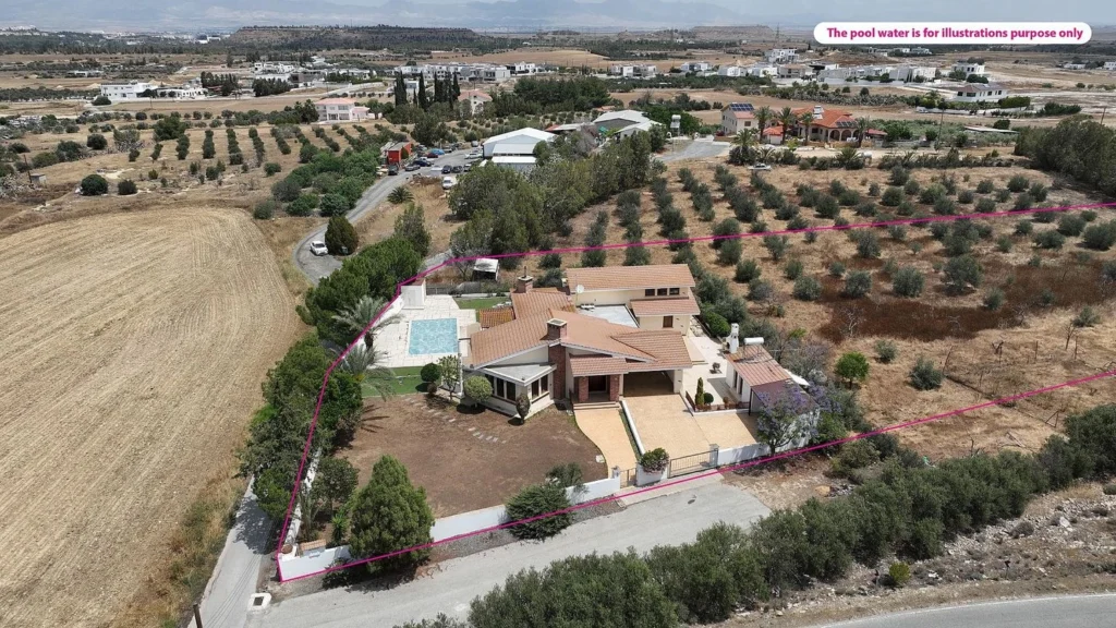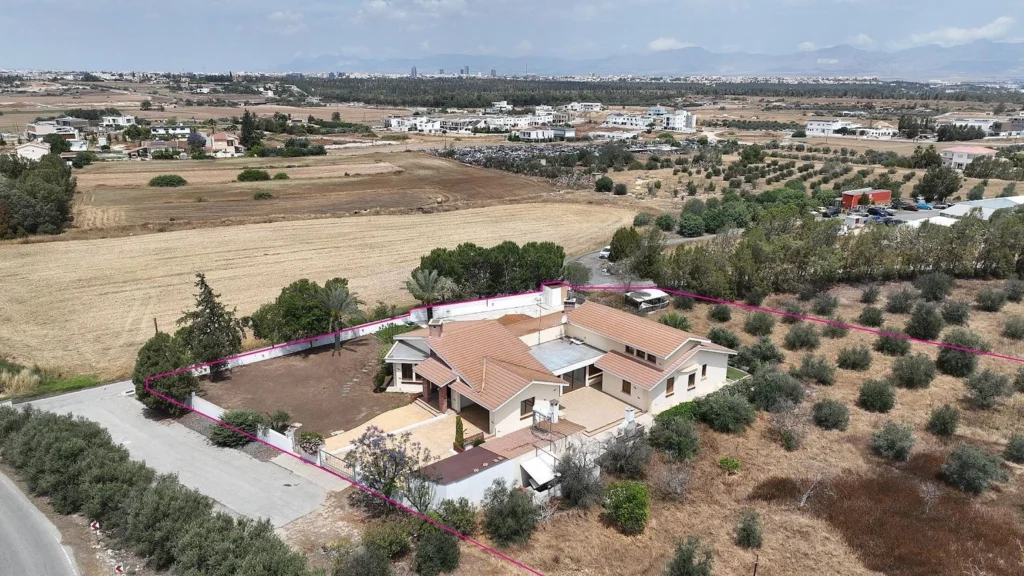 The property for sale is a luxury detached house within a large residential field of 6.076sq.m. situated in Geri Nicosia. The ground floor of the house consists of an entrance hall an open plan living and dining room with a bar a guest toilet a kitchen a sitting area with a fireplace an office room covered and uncovered verandas a laundry room a bathroom and four bedrooms with the master bedroom featuring an en suite bathroom and a walk in wardrobe. A staircase also provides access to the first floor which comprises a storage area covered and uncovered verandas. The property boasts an inviting barbecue area a meticulously landscaped garden storage room and a boiler room. The asset is situated approximately 1.5km outside Geri s central community and 1.6km away from the Athalassa National Forest Park. The property falls within Zone 8 with a building coefficient of 60 coverage of 35 and permission for two floors up to 8.3m in height . Pending issuance of Energy Performance Certificate.