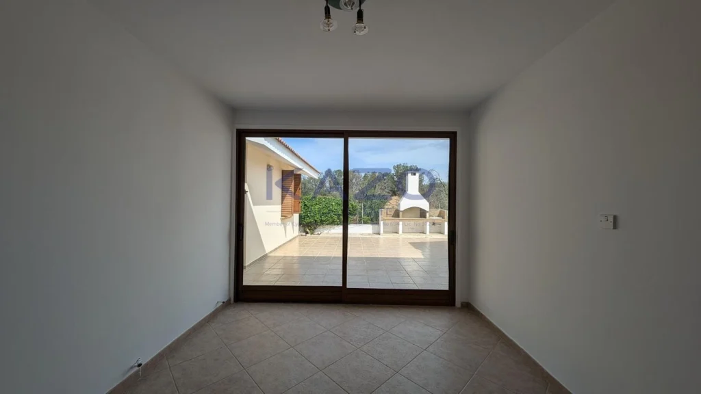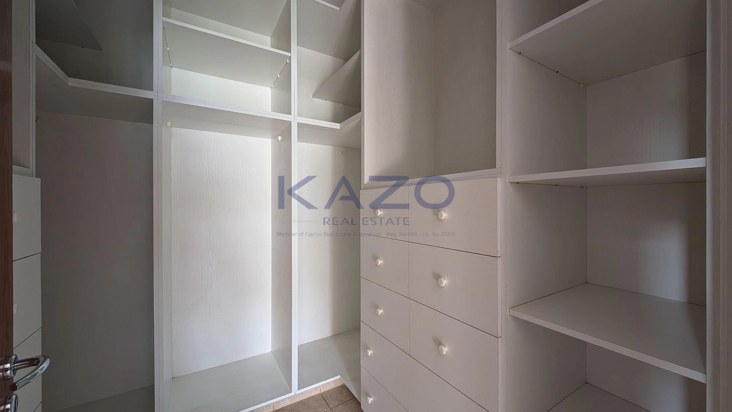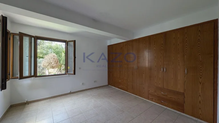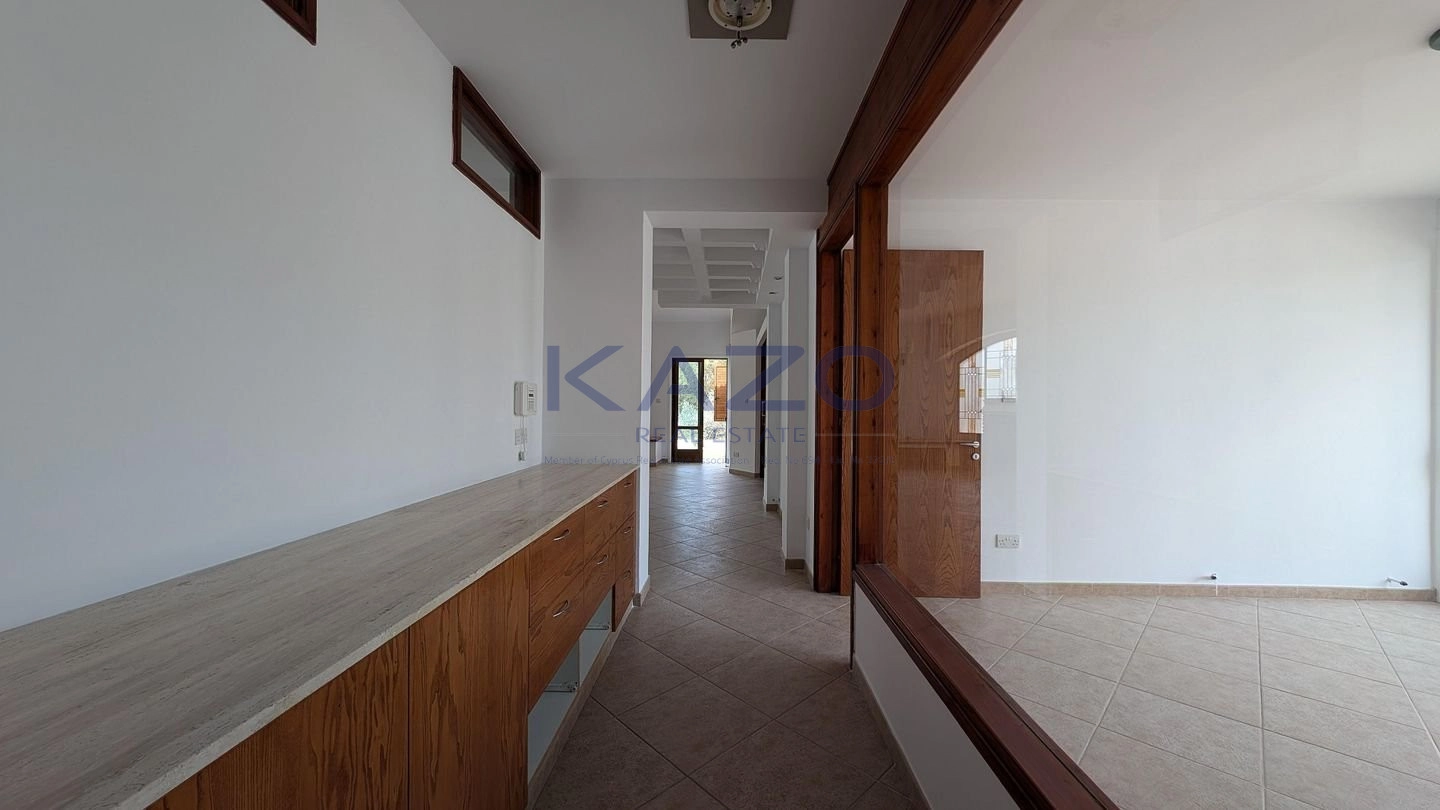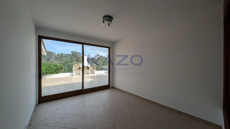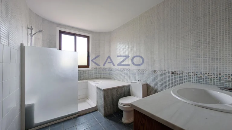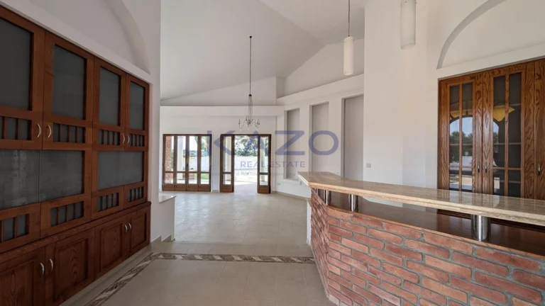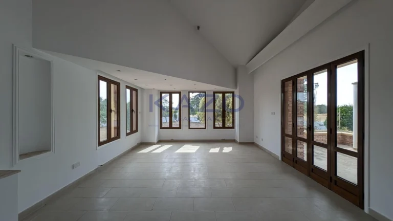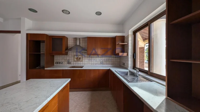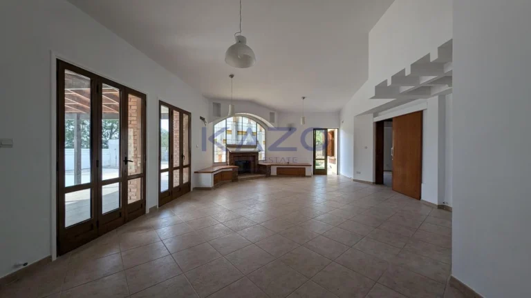 The property for sale is a luxury detached house within a large residential field of 6.076sq.m., situated in Geri, Nicosia. The ground floor of the house consists of an entrance hall, an open-plan living and dining room with a bar, a guest toilet, a kitchen, a sitting area with a fireplace, an office room, covered and uncovered verandas, a laundry room, a bathroom, and four bedrooms, with the master bedroom featuring an en-suite bathroom and a walk-in wardrobe. A staircase also provides access to the first floor, which comprises a storage area, covered and uncovered verandas. The property boasts an inviting barbecue area, a meticulously landscaped garden, storage room and a boiler room. The asset is situated approximately 1.5km outside Geri’s central community and 1.6km away from the Athalassa National Forest Park. The property falls within Zone Κα8, with a building coefficient of 60%, coverage of 35%, and permission for two floors (up to 8.3m in height). Pending issuance of Energy Performance Certificate.