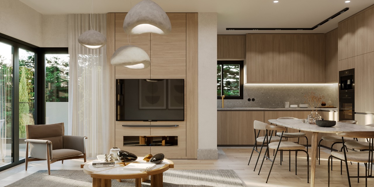 This apartment stands out with its modern architecture, ergonomic design, and use of high-quality materials and innovative technologies. Spanning 50 sqm, the unit provides comfortable living space with an included garage for one car, enhancing convenience.