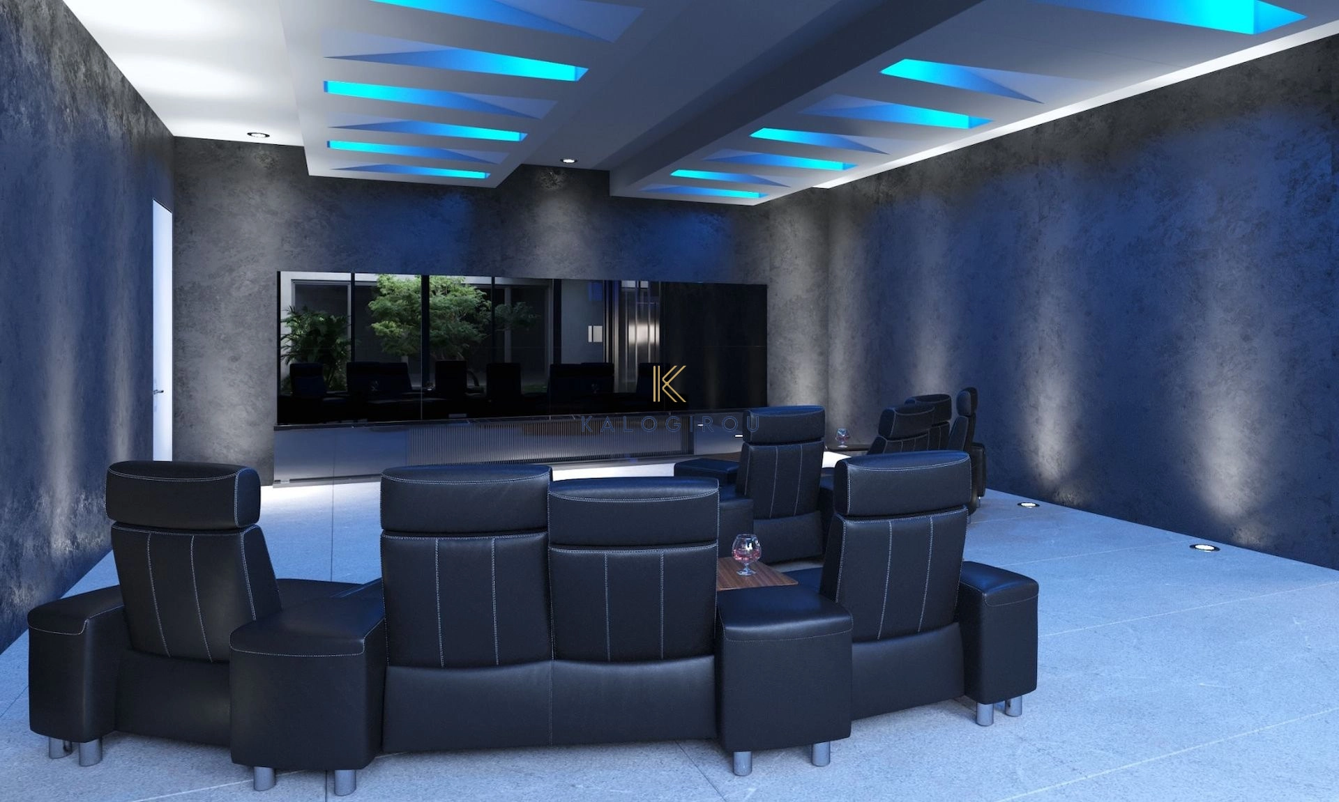 The huge basement is built within the rock formation of the land. Fully equipped parking for 6-8 cars has been implemented at this level. Open plan fully equipped gym full of modern equipment and floor soundproofing it is the perfect escape for a personal workout. An additional luxury to this Gym is the comfortable Spa, which includes a sauna room, a Jacuzzi and a Hammam bath for relaxation and wellness. In addition, there are 2 bedrooms on this level.