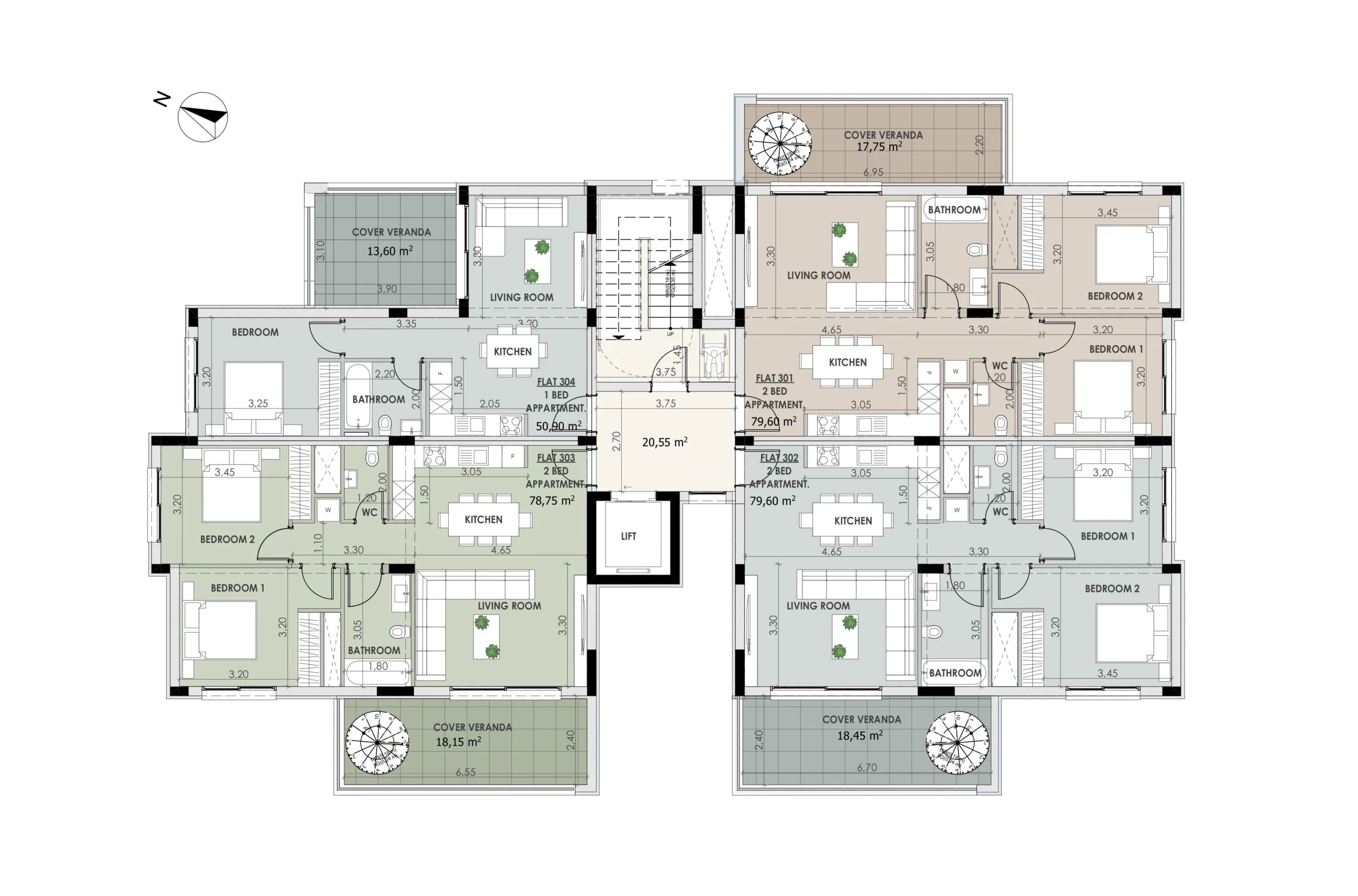 The apartment feature 2 bedrooms, spacious living area, and well-equipped kitchen, with large, covered veranda and roof garden to enjoy outdoor space.