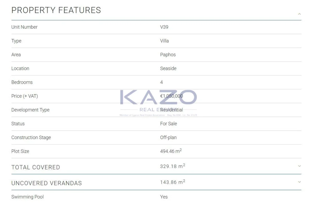 This unique property is offered by Kazo Real Estate. Take advantage of this opportunity to secure a quality villa in one of the area’s most desirable locations. Contact us today for more details and to arrange a viewing.