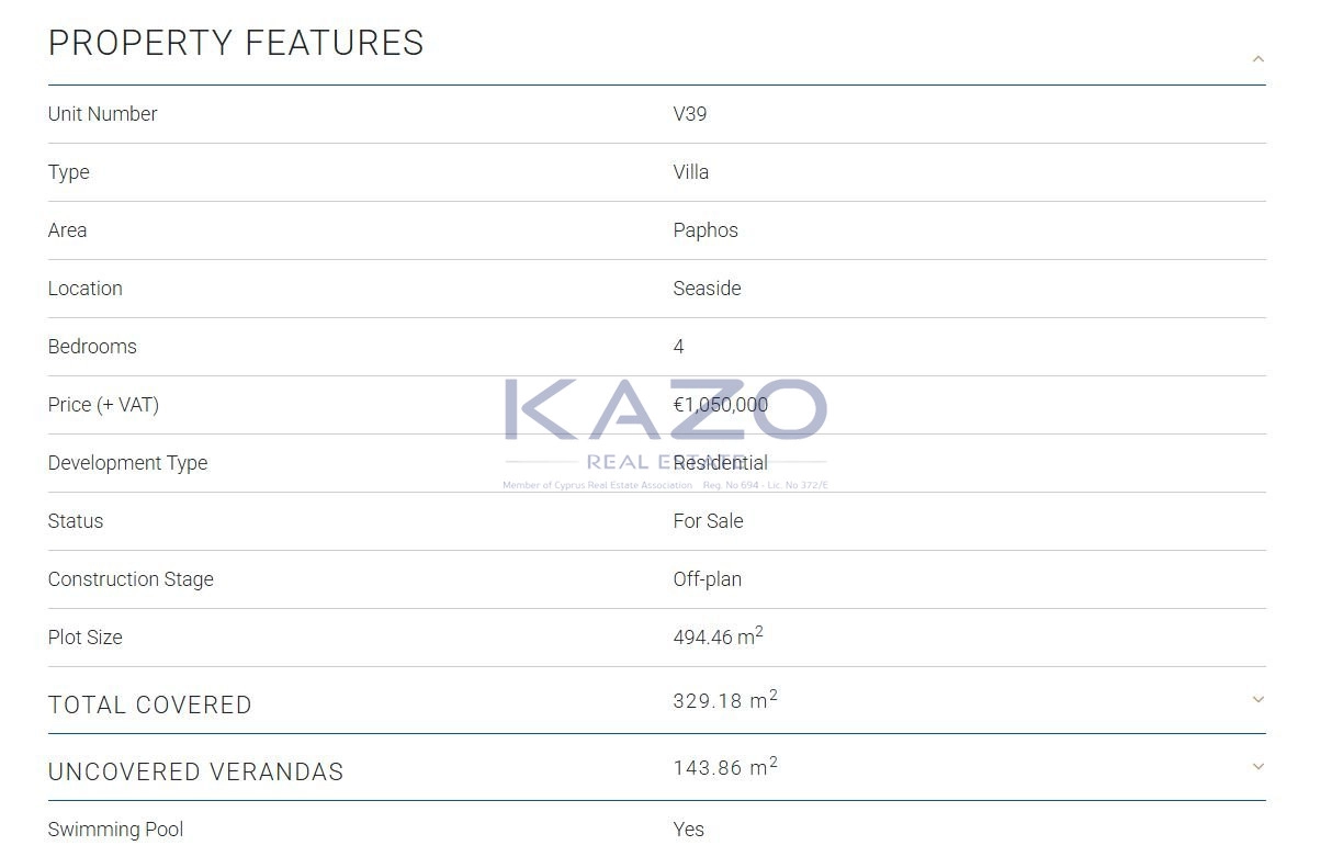For sale: Off-plan villa in the sought-after area of Geroskipou, offering a perfect blend of comfort and modern style. This spacious home features an internal area of 329 m², thoughtfully designed for family living.