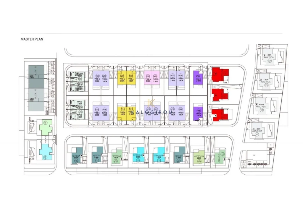 The complex boasts 2-, 3-bedroom semi- detached houses and villas. It is set on a tranquil setting, perfect for raising a family and spending relaxing summer vacations.