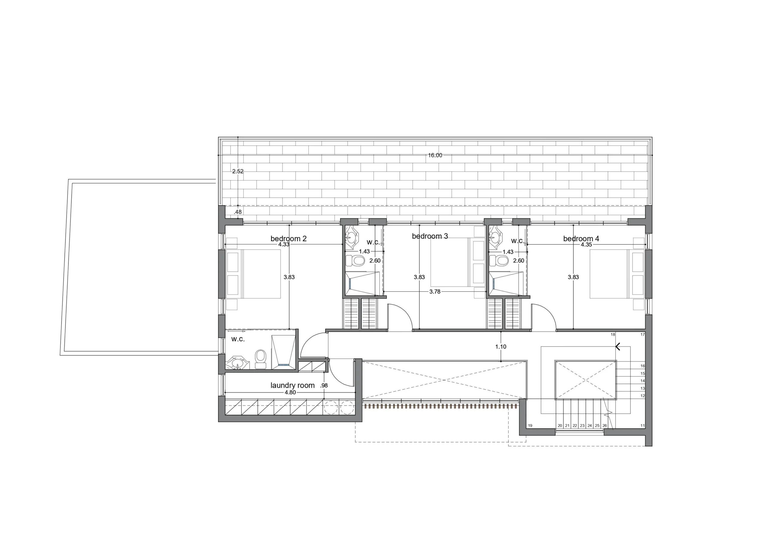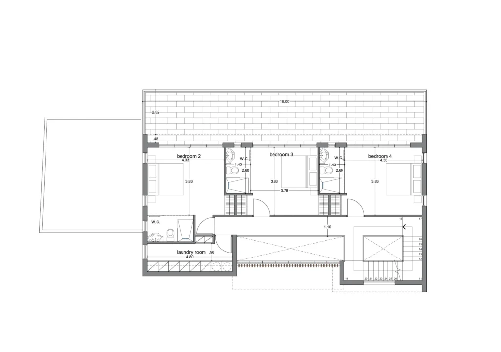 Spacious bedrooms on the first floor, each with its own en suite WC and shower. Roof garden with breathtaking sea views. The roof garden features an additional bedroom.