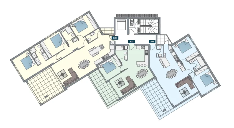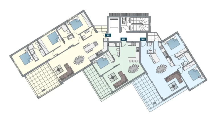 Sale of 4 bedrooms penthouse with roof garden in Agia Zoni, Limassol. The building is situated at the distance 230 meters from Makariu avenue and 1400 meters from the sea. It consists of 3 three bedrooms apartments, one apartment on each floor. The penthouse consists of open plan kitchen/living area, 3 bedrooms plus 1 studio with kitchen and bathroom on the roof garden. There are also 2 parking places and storage room 5 m2.